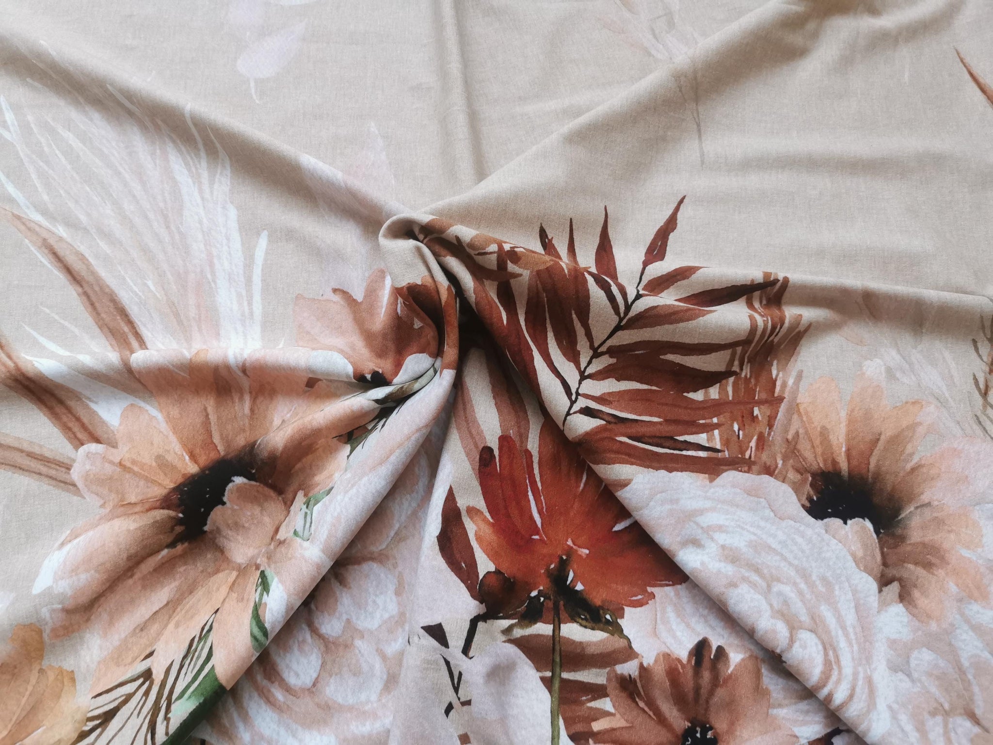 Baumwoll Jersey Stoff Digital Druck "Bohemian Blossom" braune Blumen by Jessy Sewing