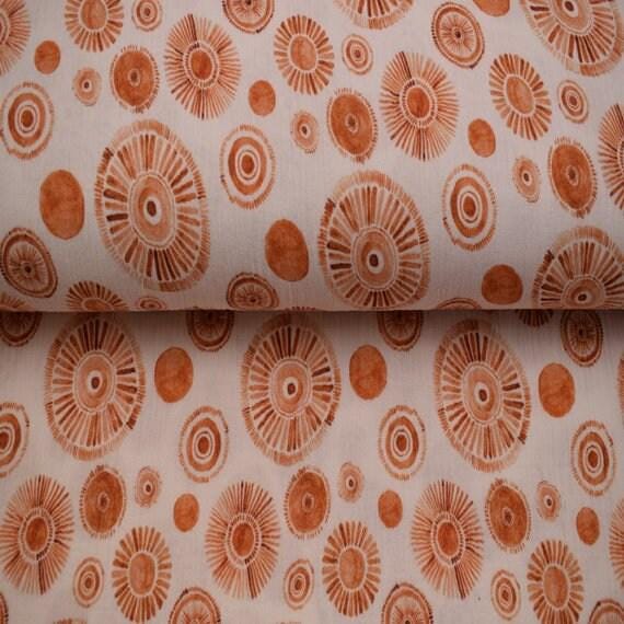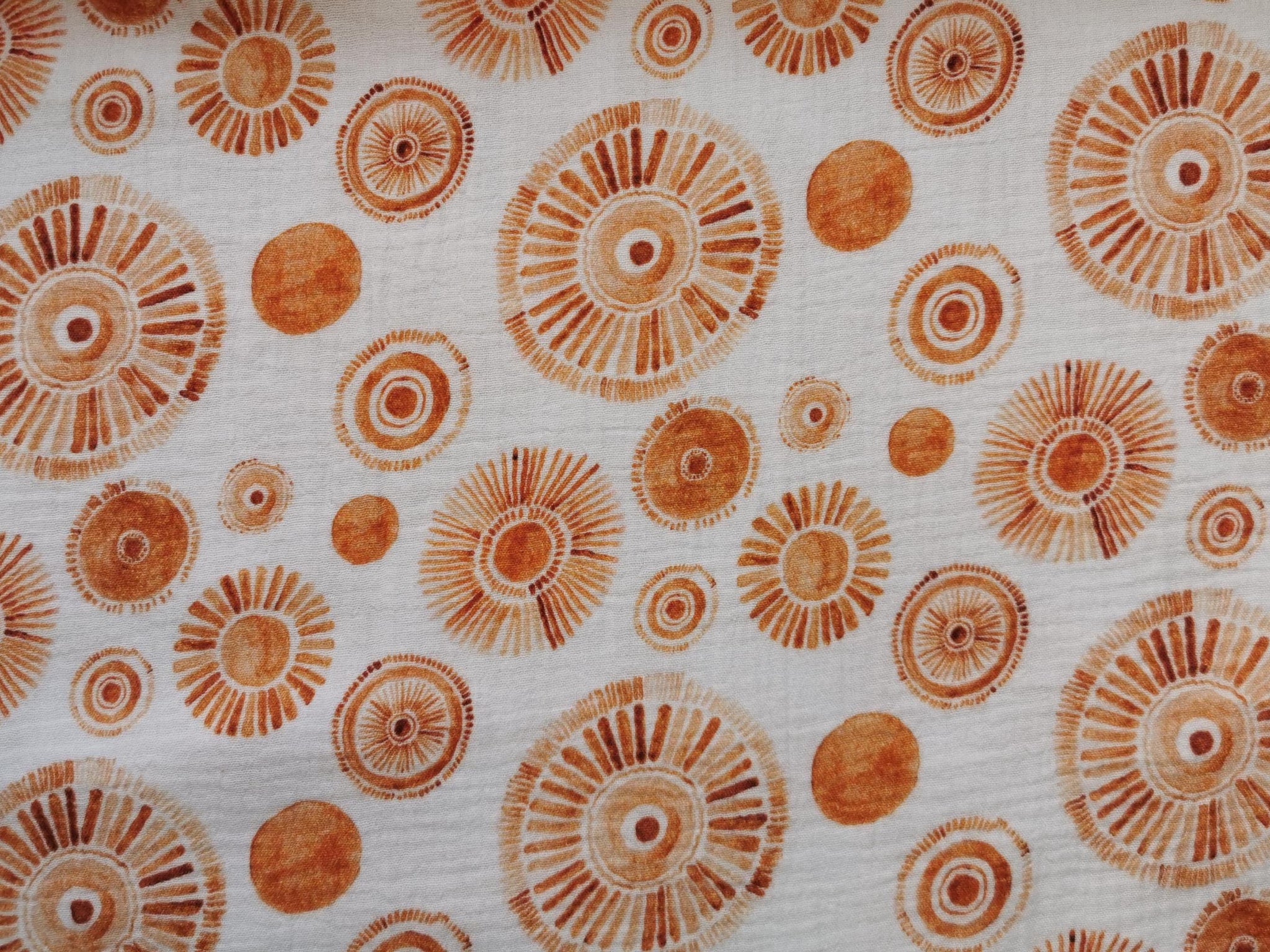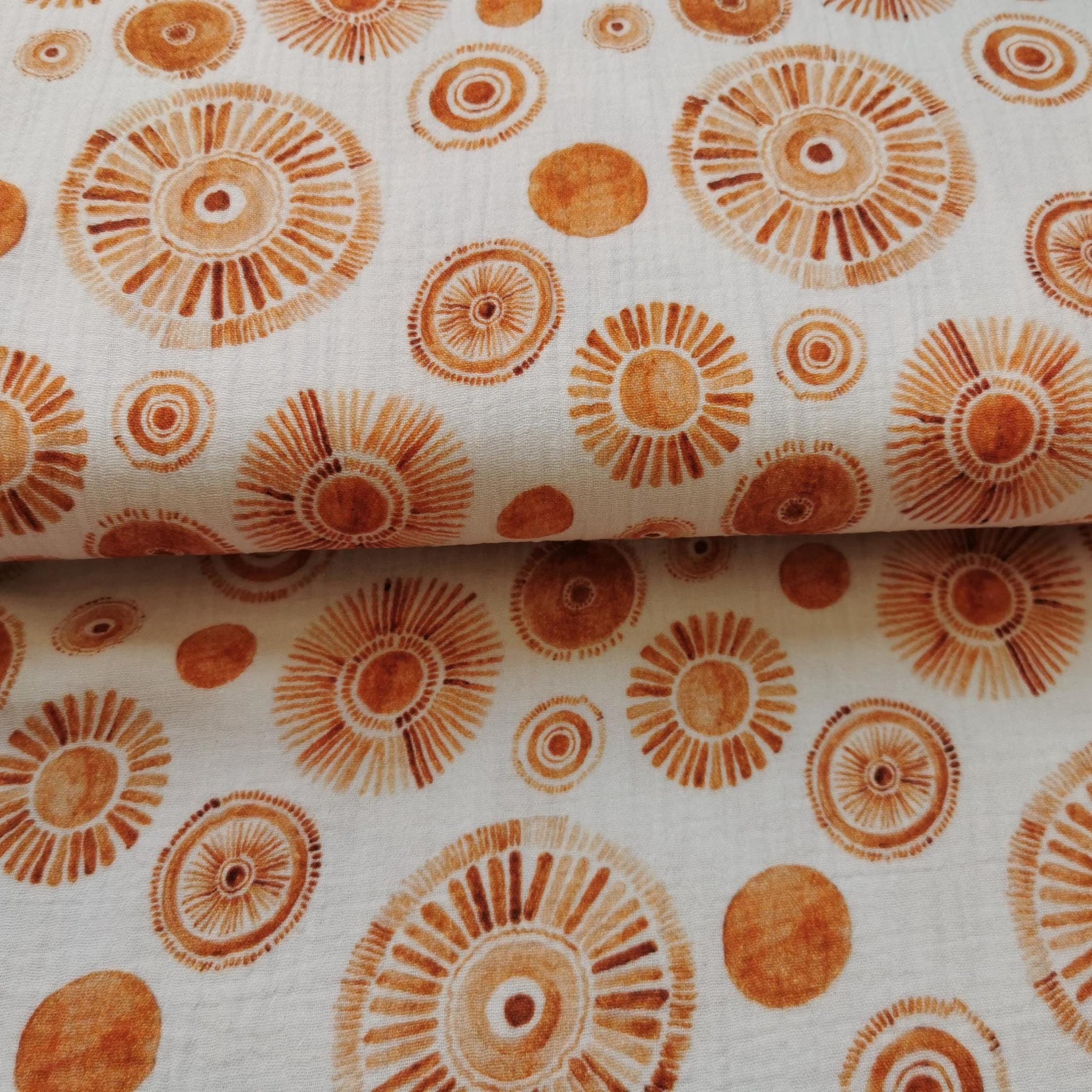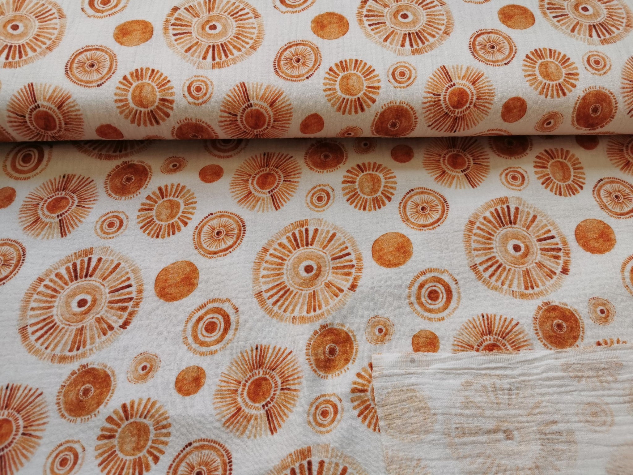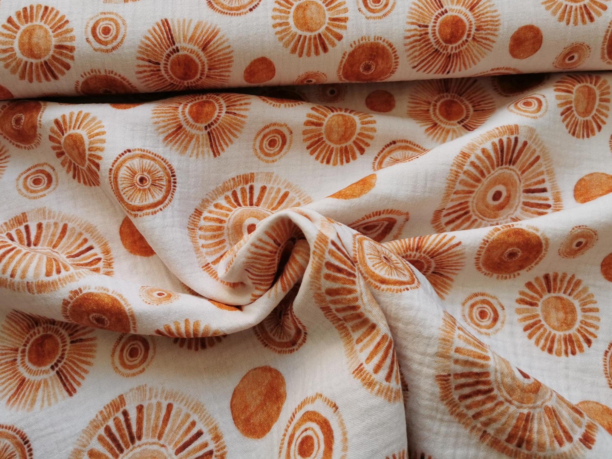 Baumwoll Musselin Stoff Druck wollweiß terrakotta Retroblumen