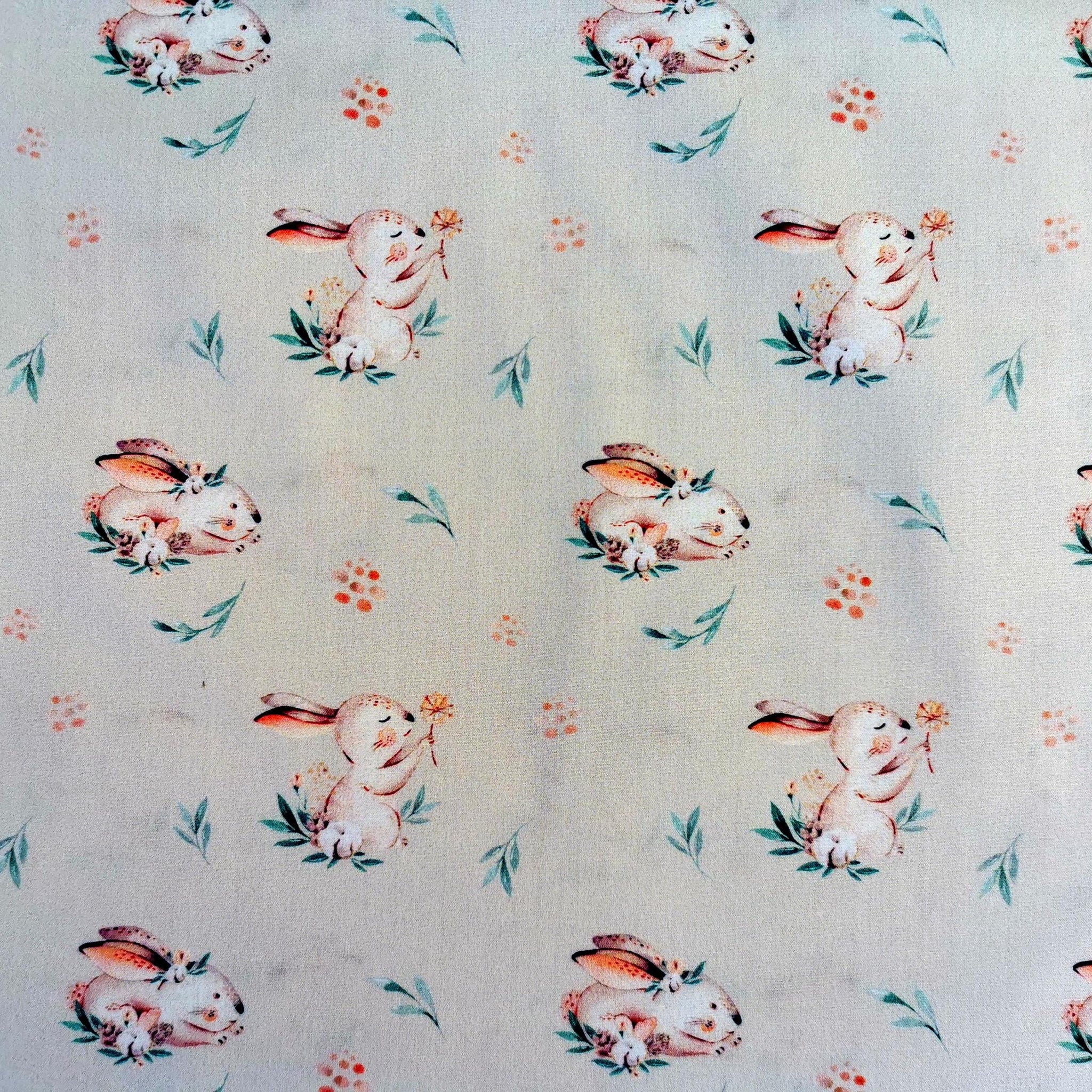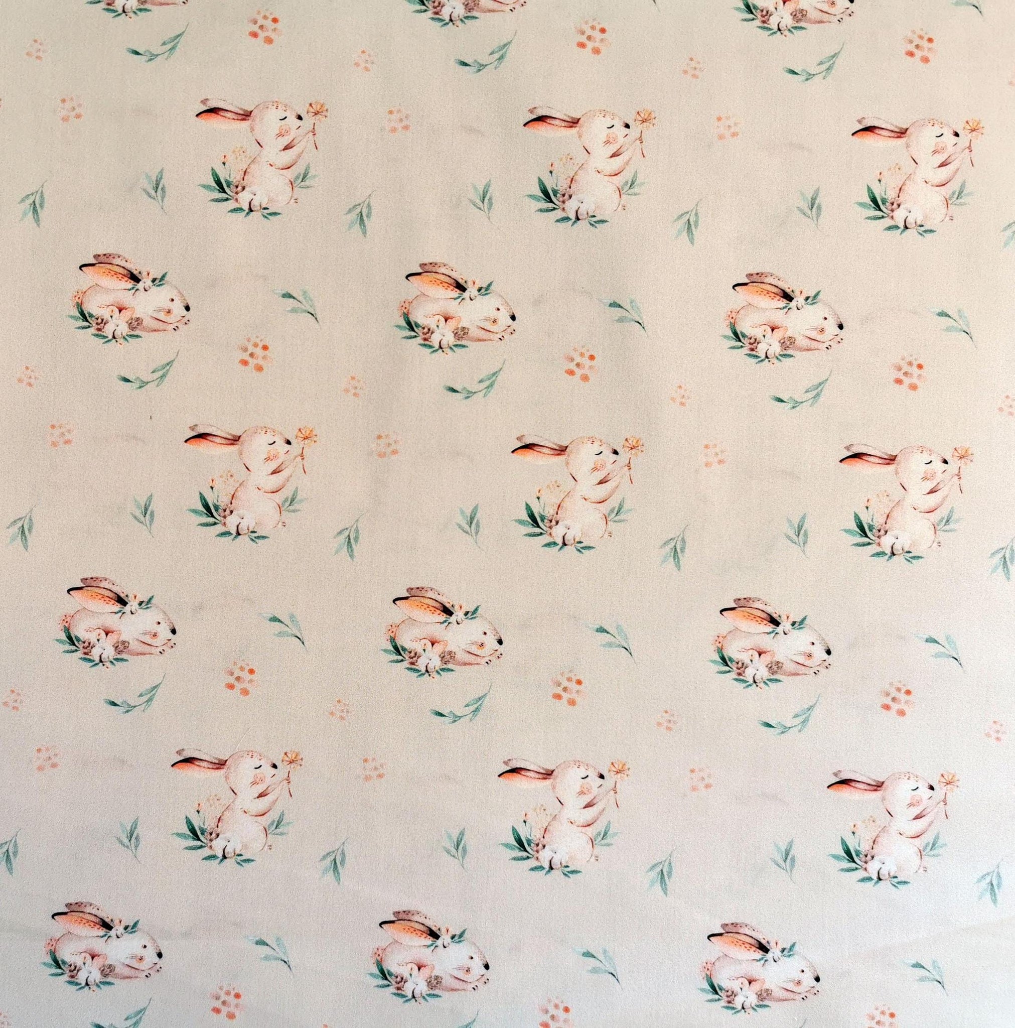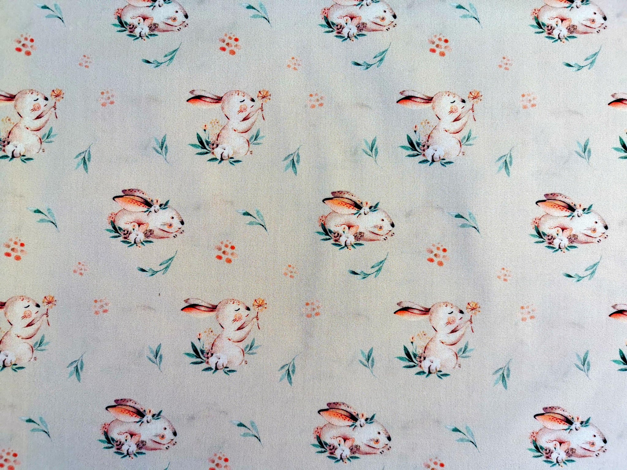 Baumwoll-Stoff Ostern, Häschen und Blümchen