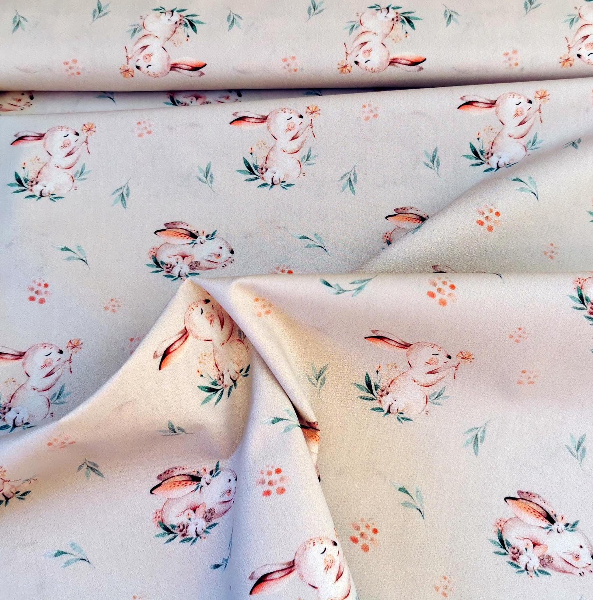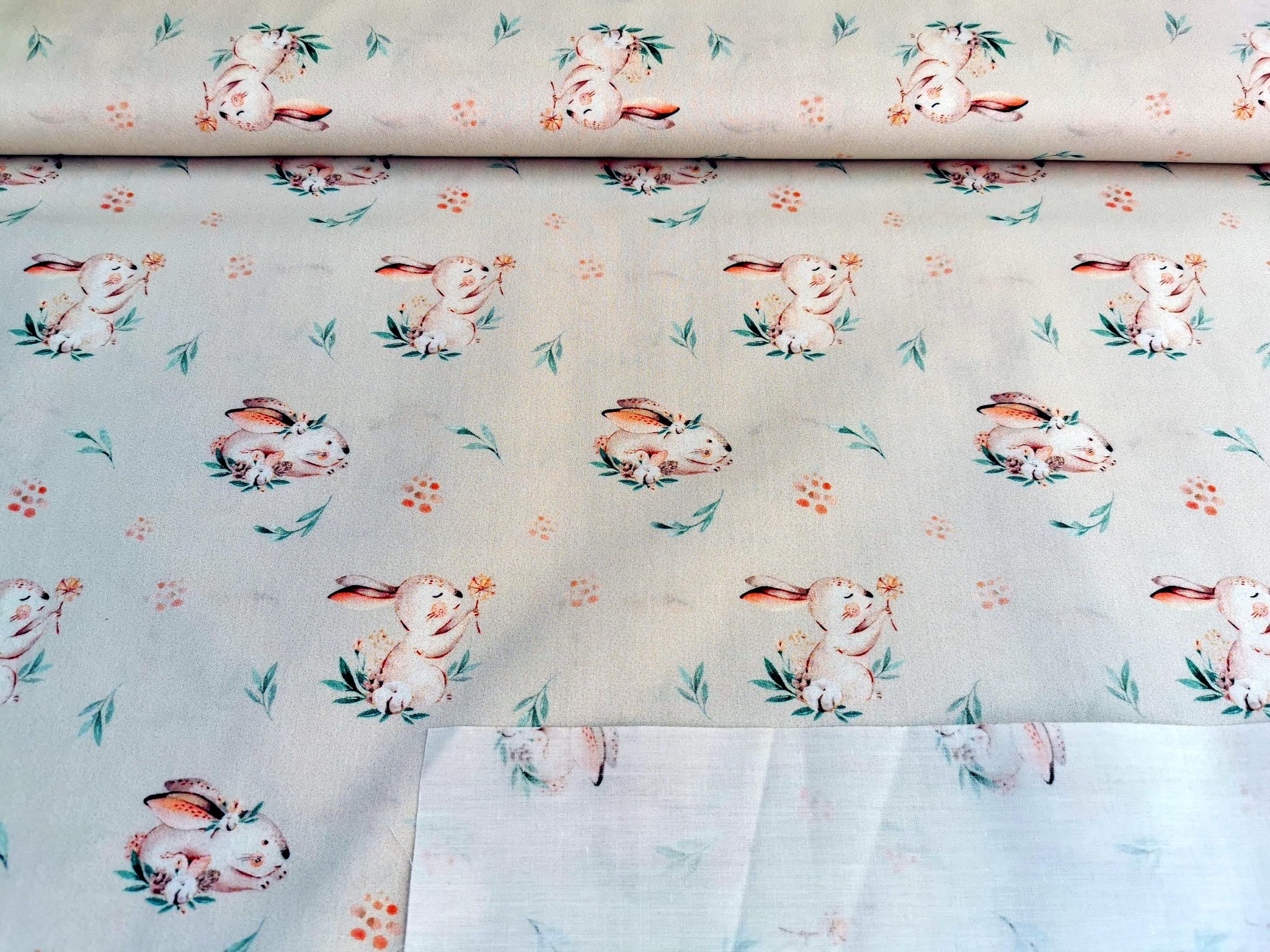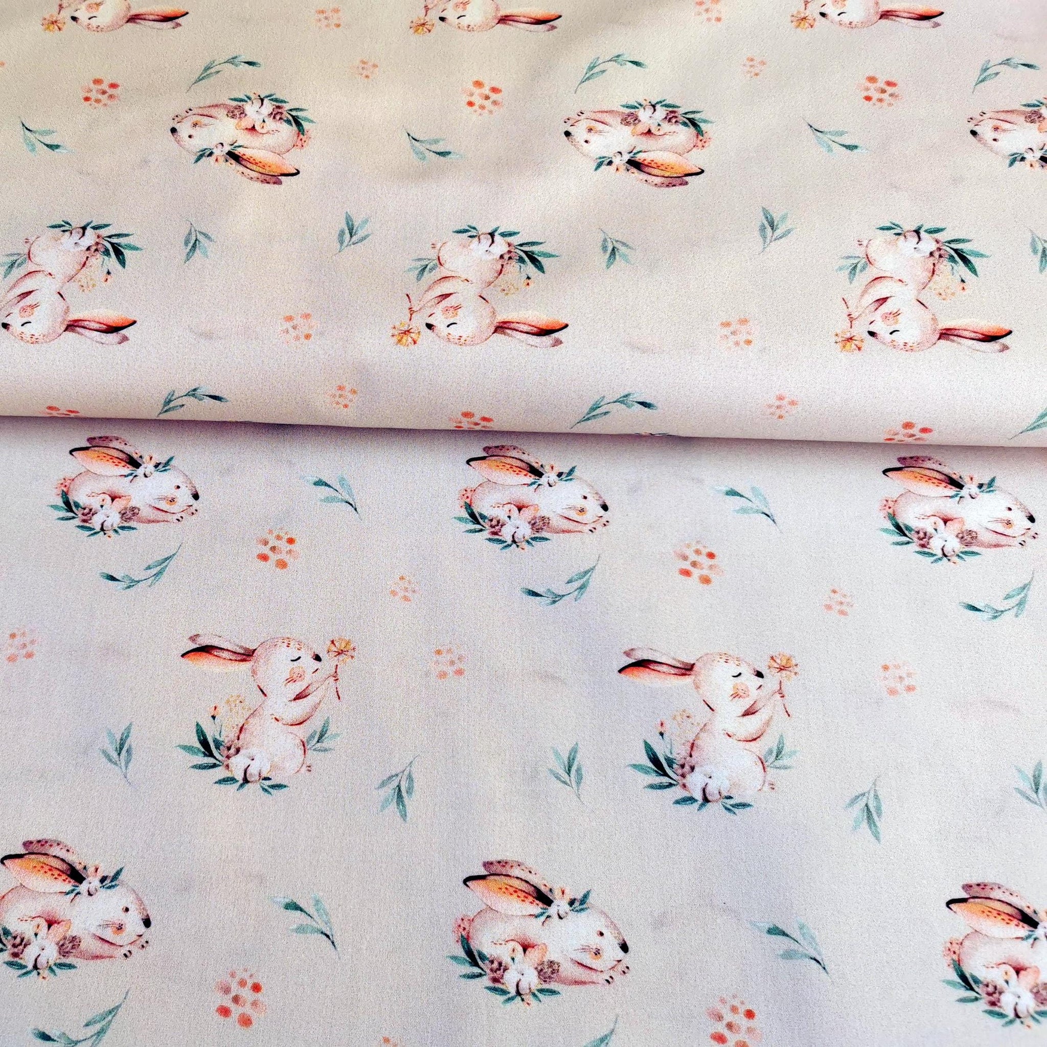 Baumwoll-Stoff Ostern, Häschen und Blümchen