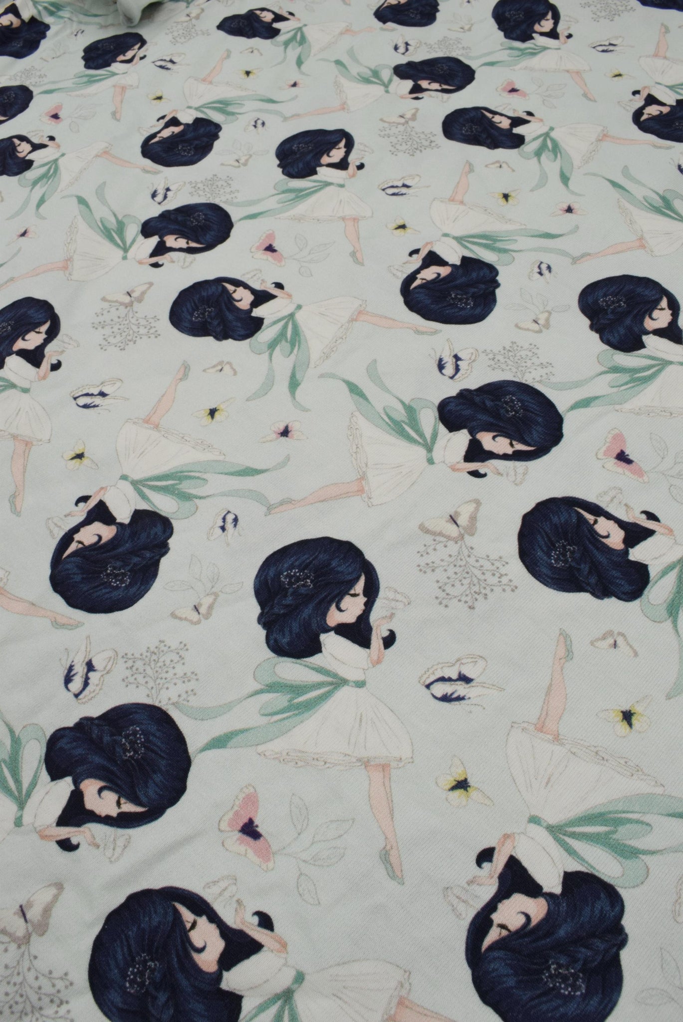 Baumwolljersey Druck Elfen Mädchen - Happy girls are the prettiest - auf mintfarbenen Hintergrund | KATINOH
