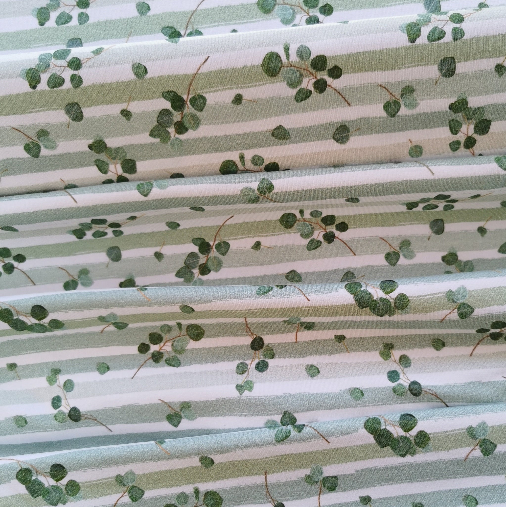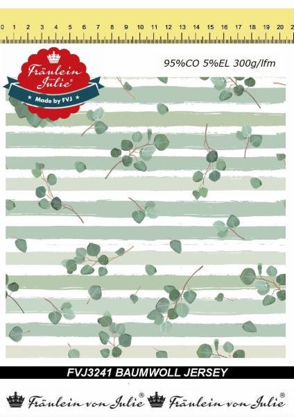 Baumwolljersey Druck - Eucalyptus Stoff grün weiß gestreift | Fräulein von Julie