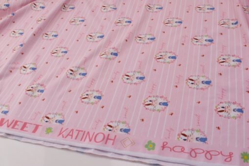 Schlüsselworte: Baumwolljersey, Frühjahr/Sommer Kollektion, Hasen, KATINOH, Stoff für Kinder, Stoff für Mädchen