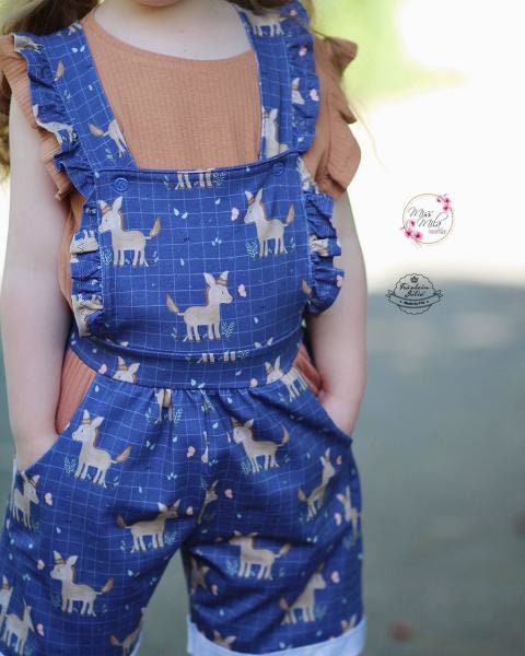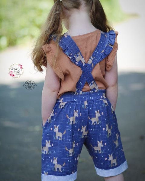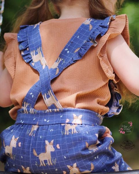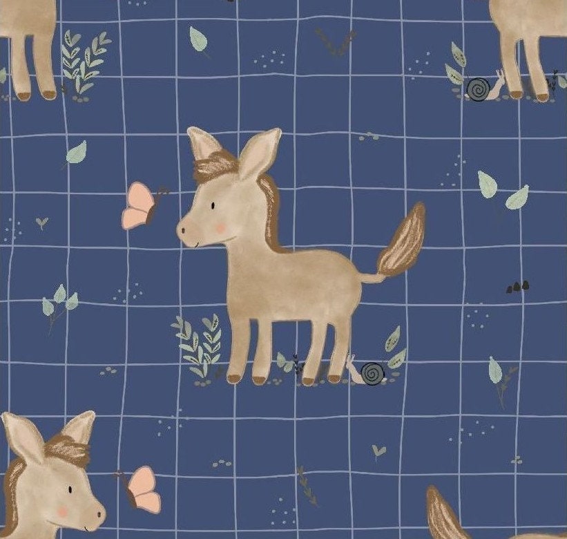 Baumwolljersey Druck kleiner Esel mit Schmetterling, auf blauem Hintergrund mit Karos | Fräulein von Julie