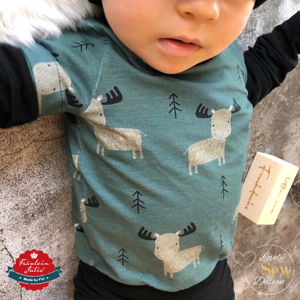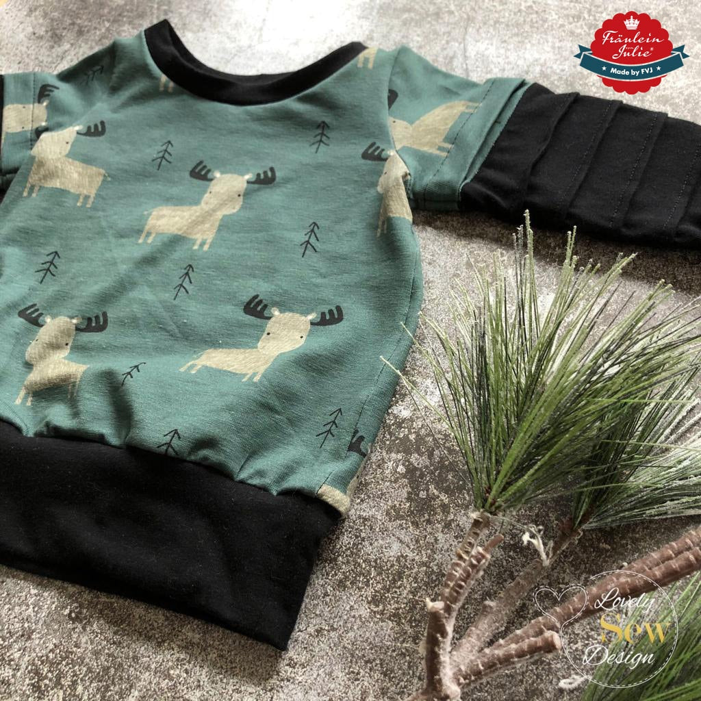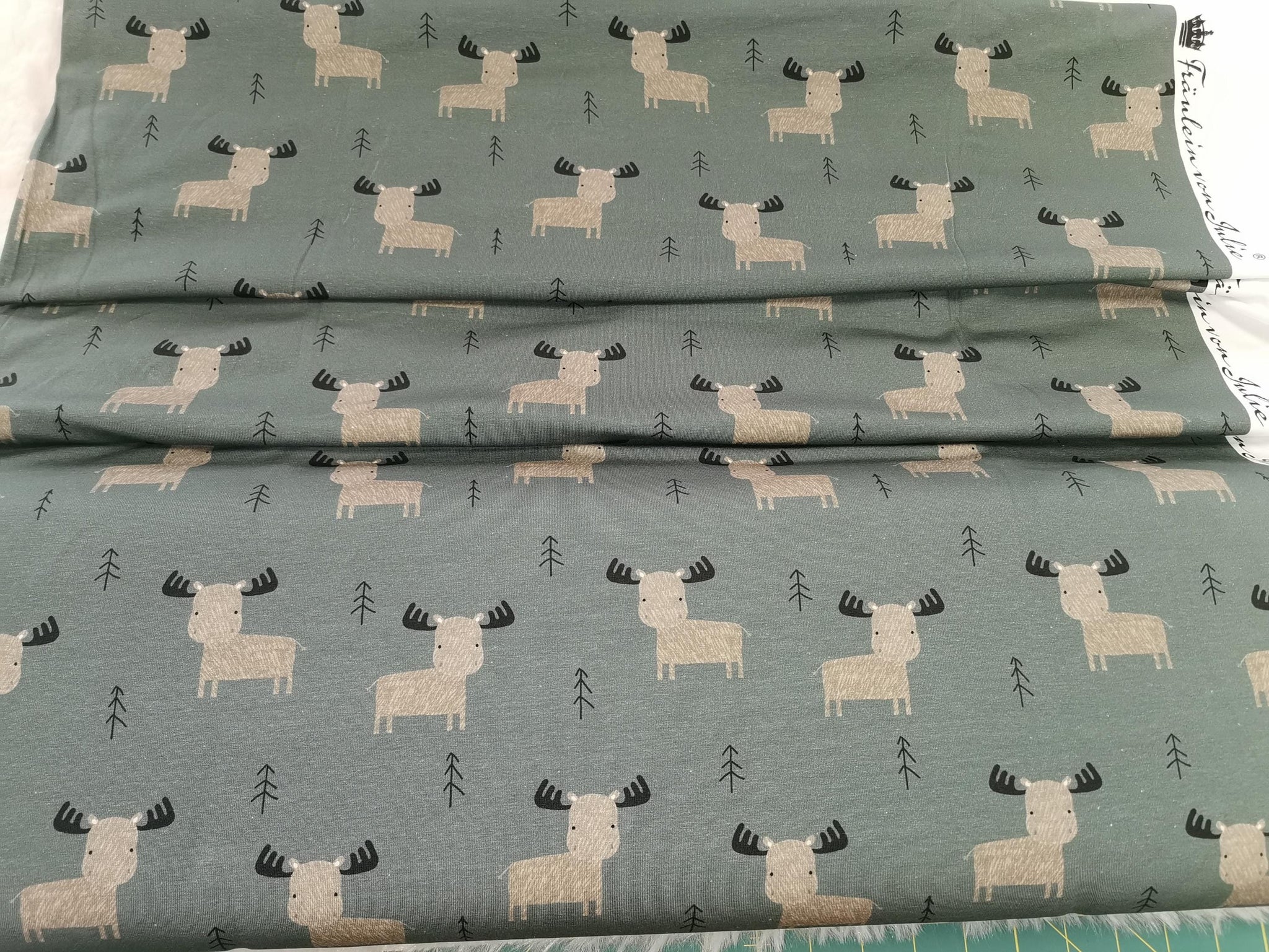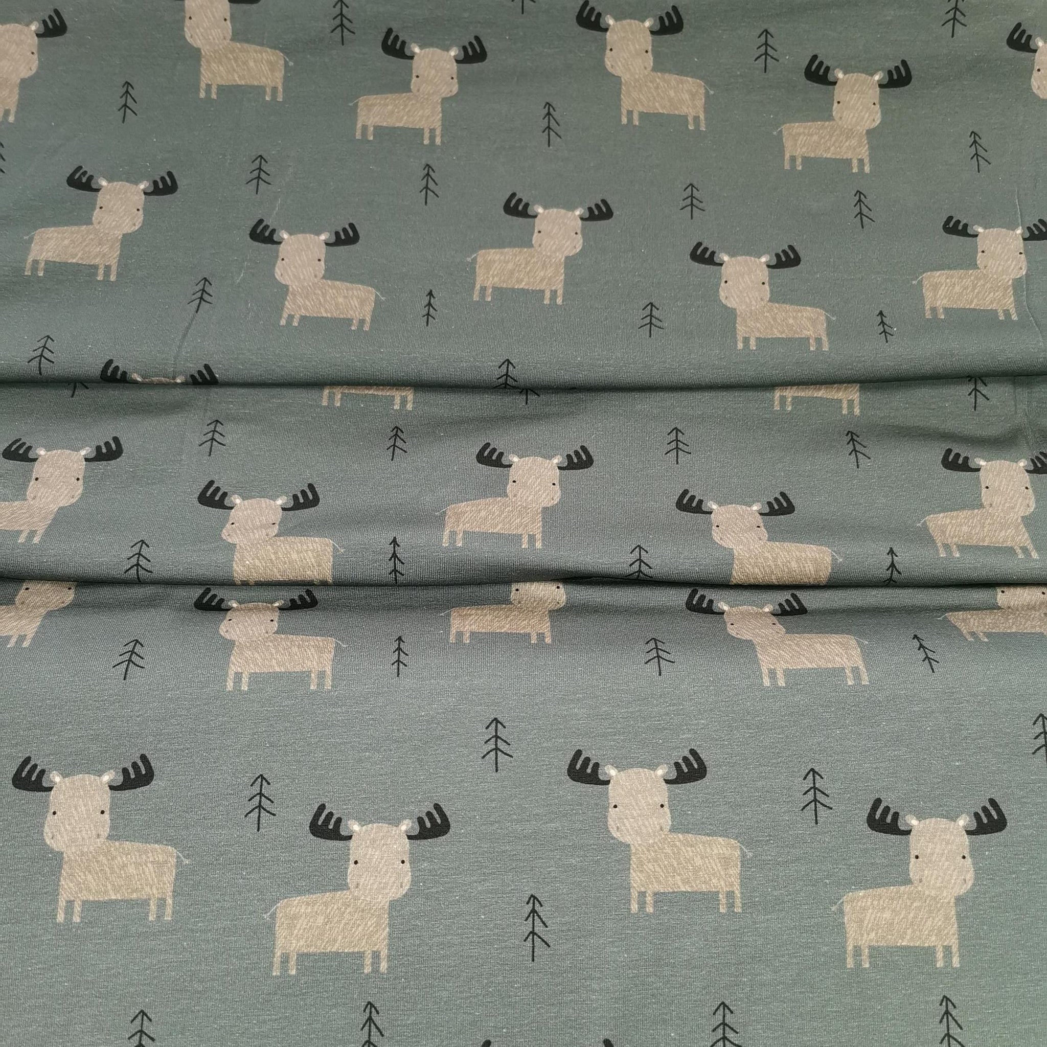 Baumwolljersey Druck kleiner Hirsch / kleines Rentier auf dunkel petrol farbenem Hintergrund | Fräulein von Julie