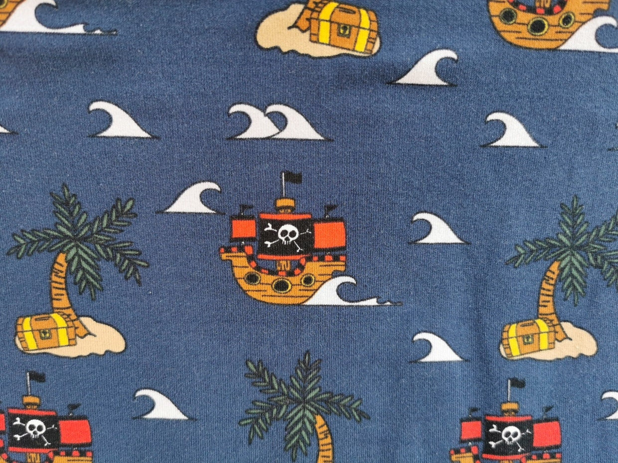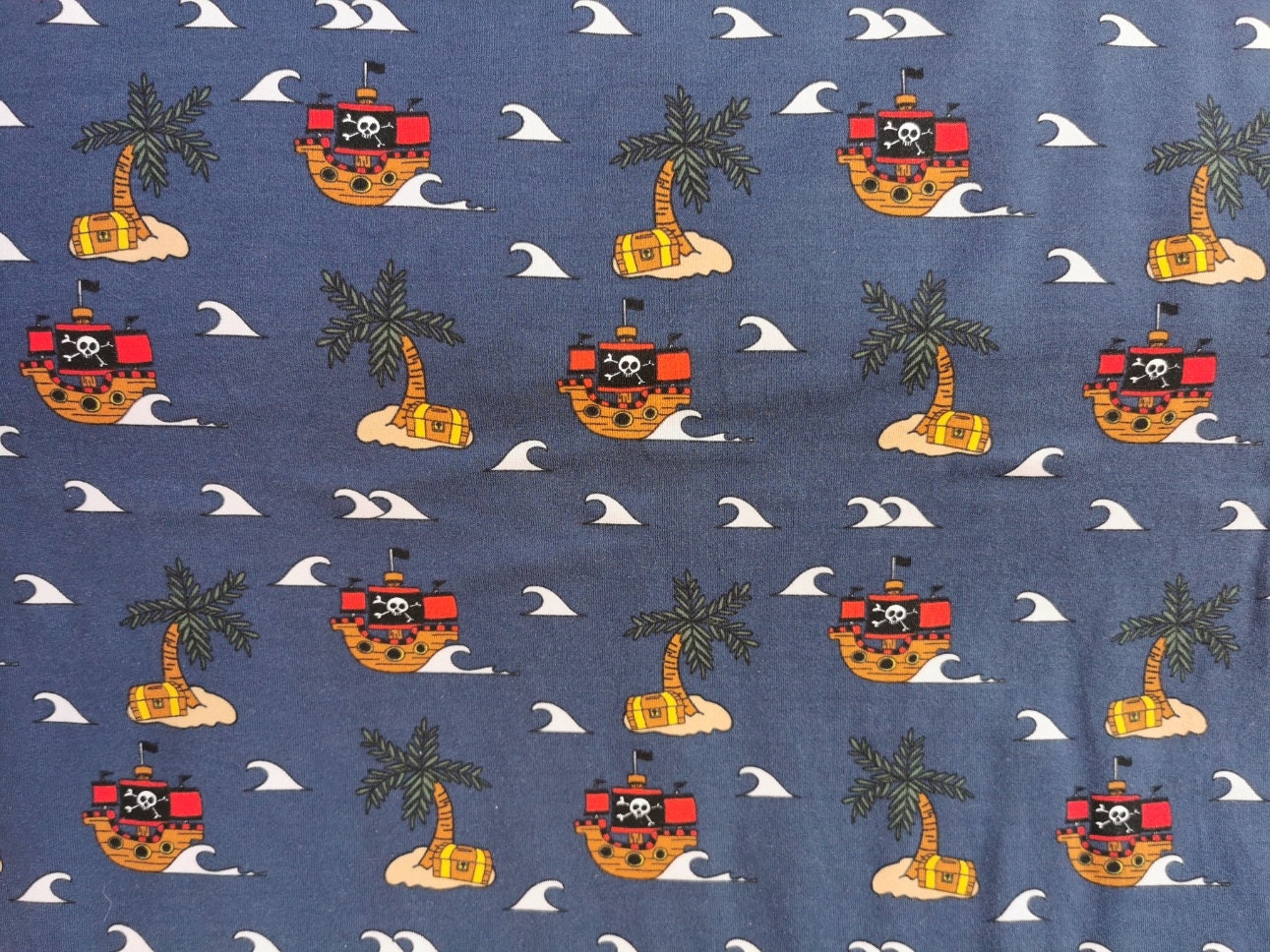 Baumwolljersey Druck Piratenschiff Insel marineblau