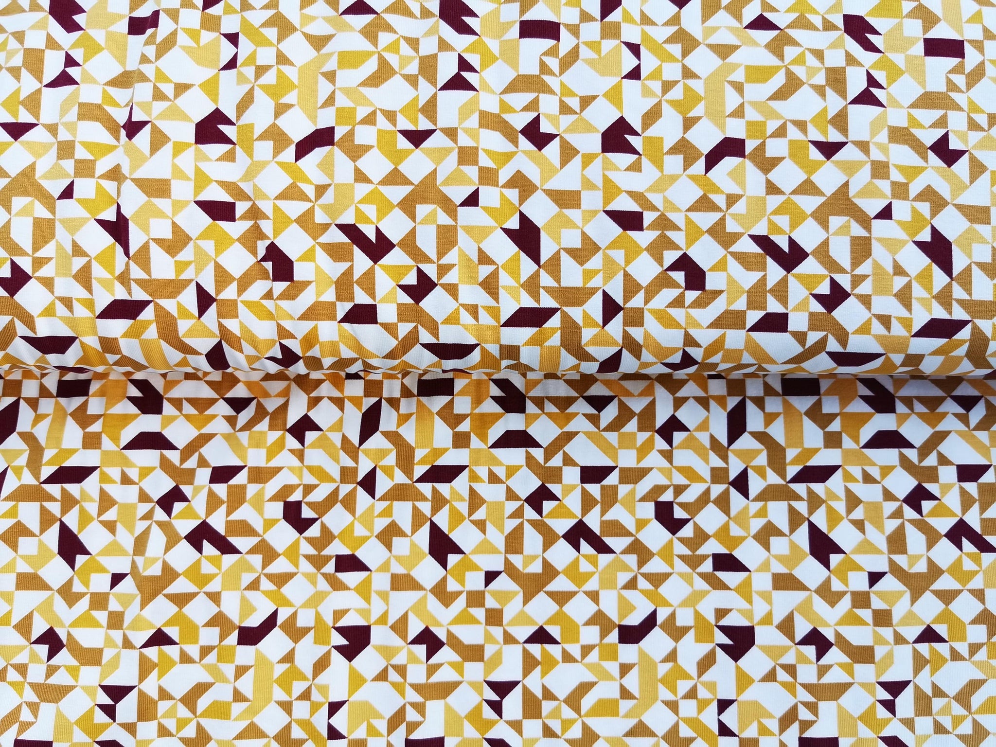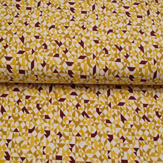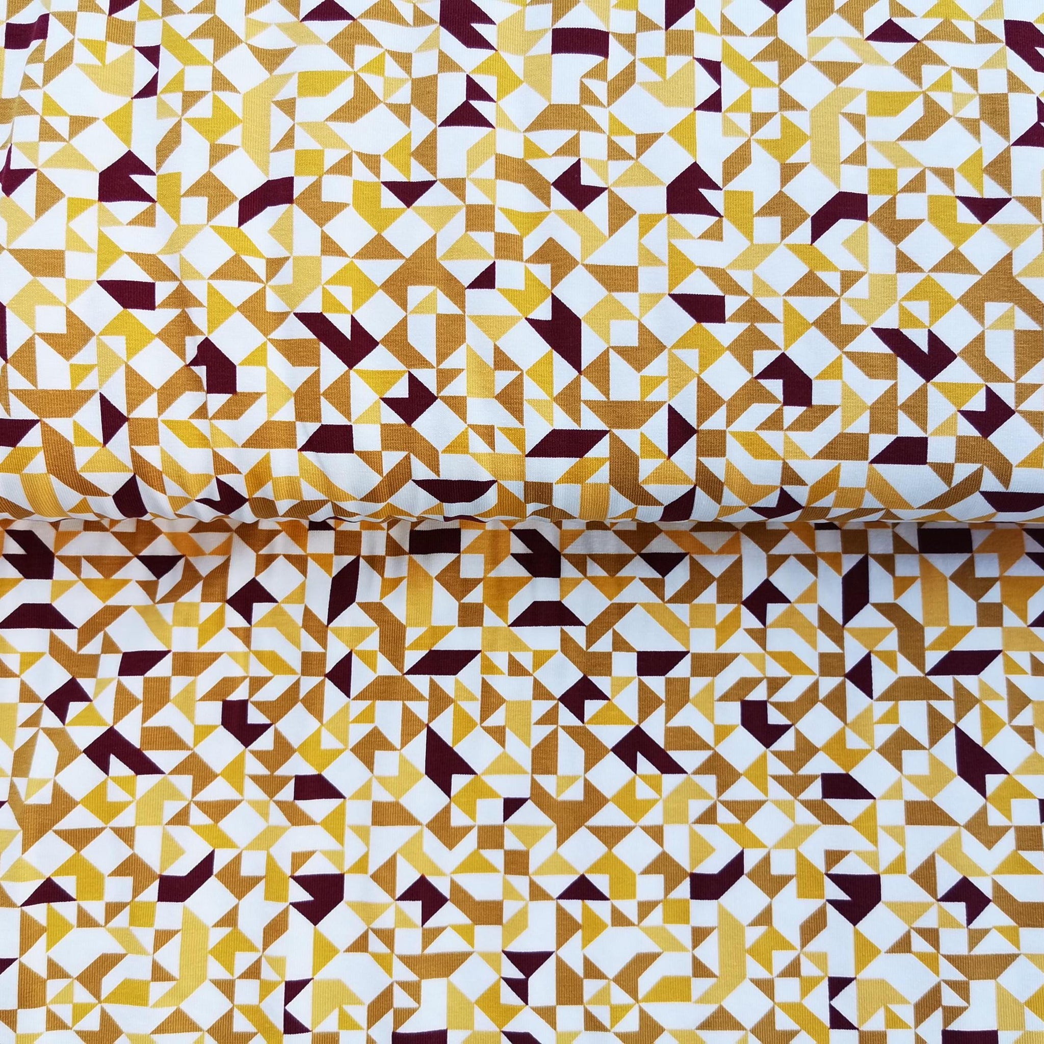 Baumwolljersey Druck Stoff Retro geometrische Formen / senf