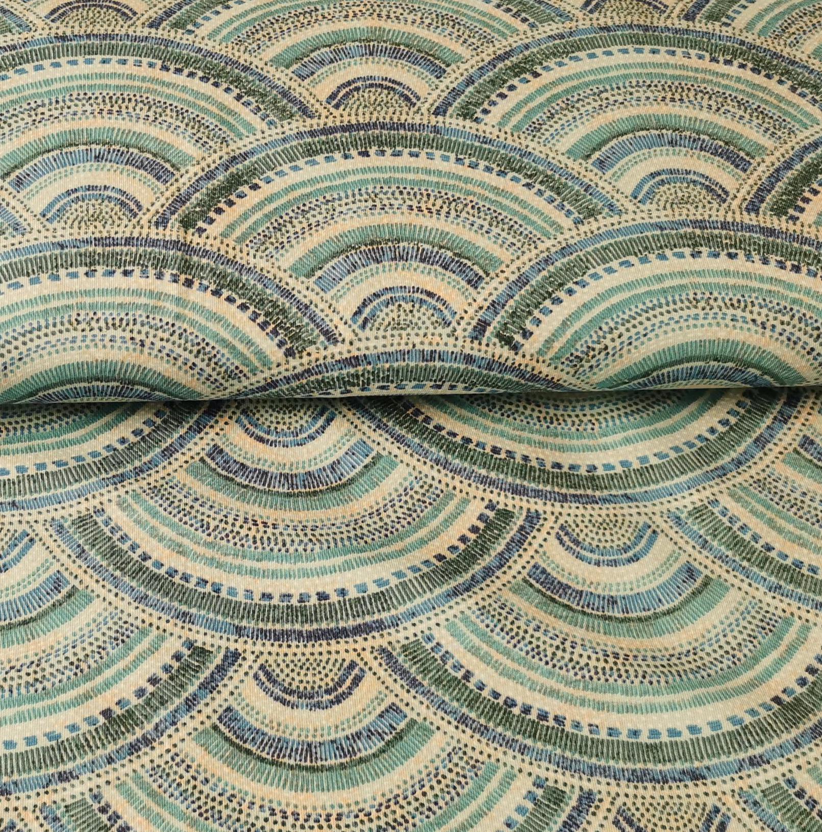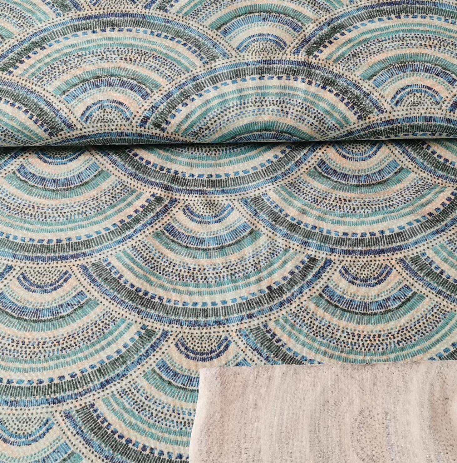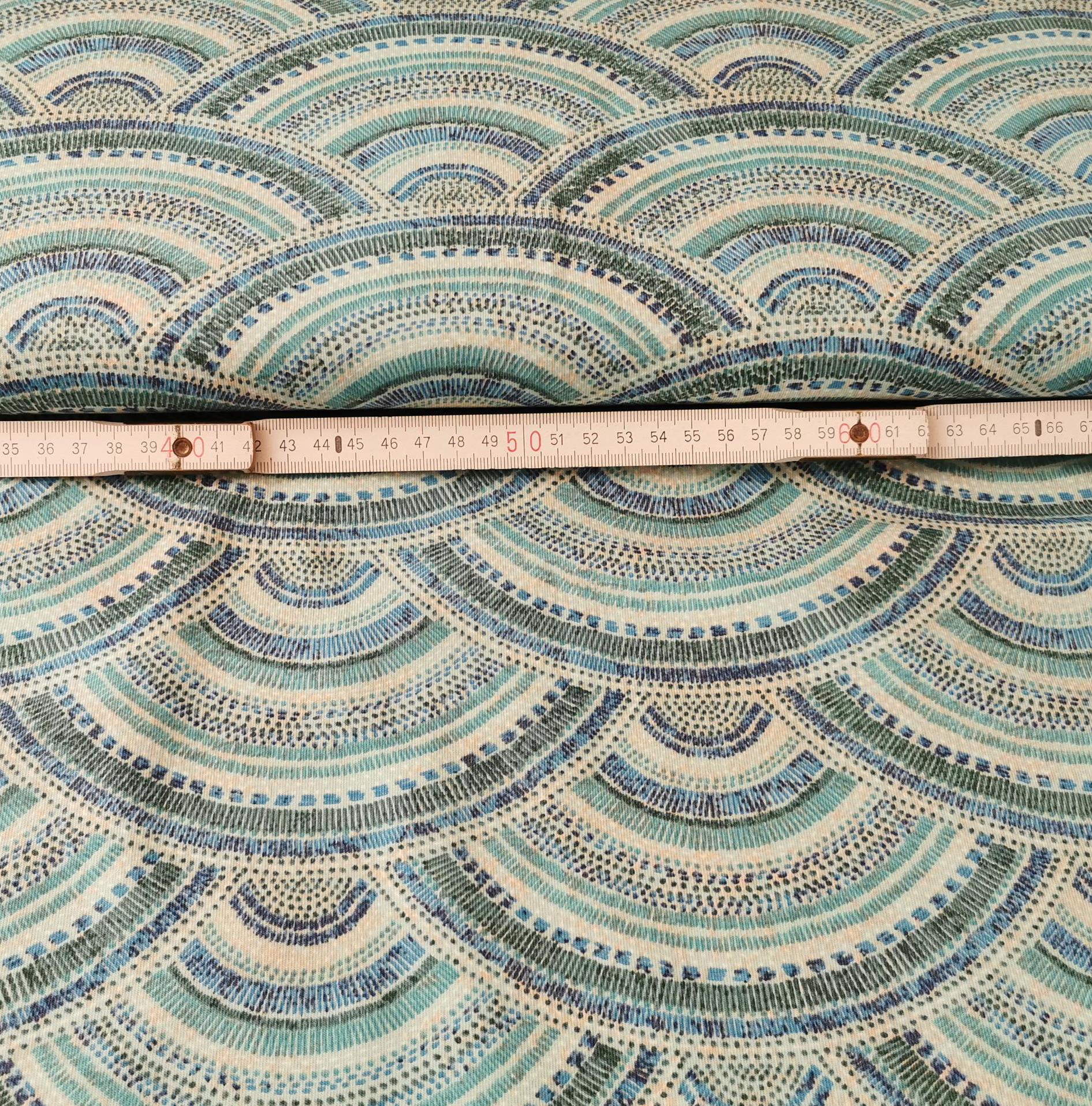 Baumwolljersey Stoff - blaue Halbkreise - Sommerstoff