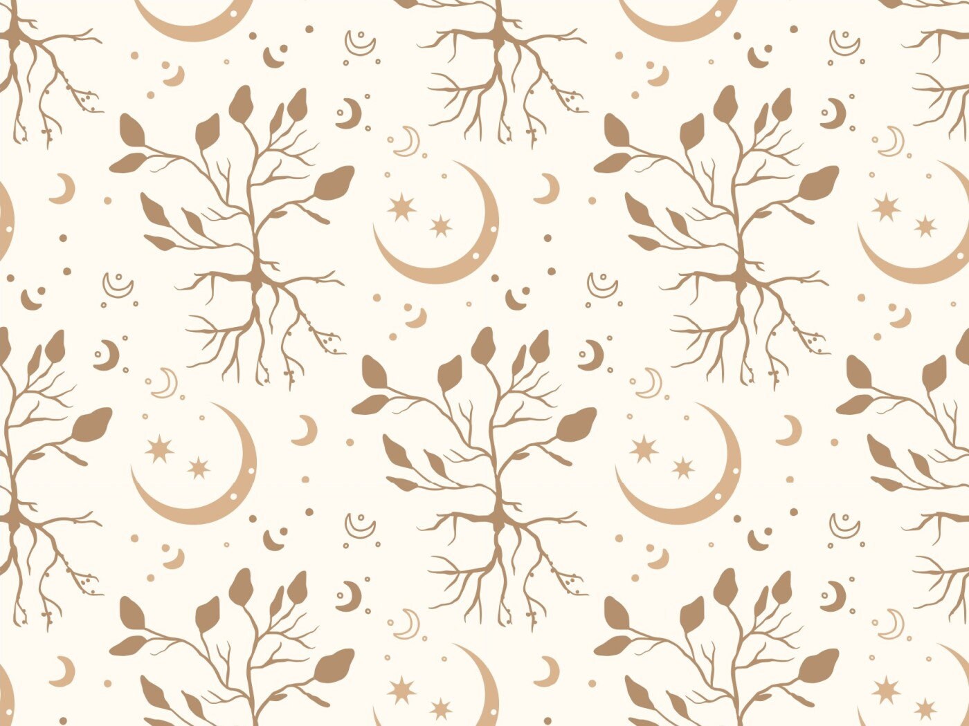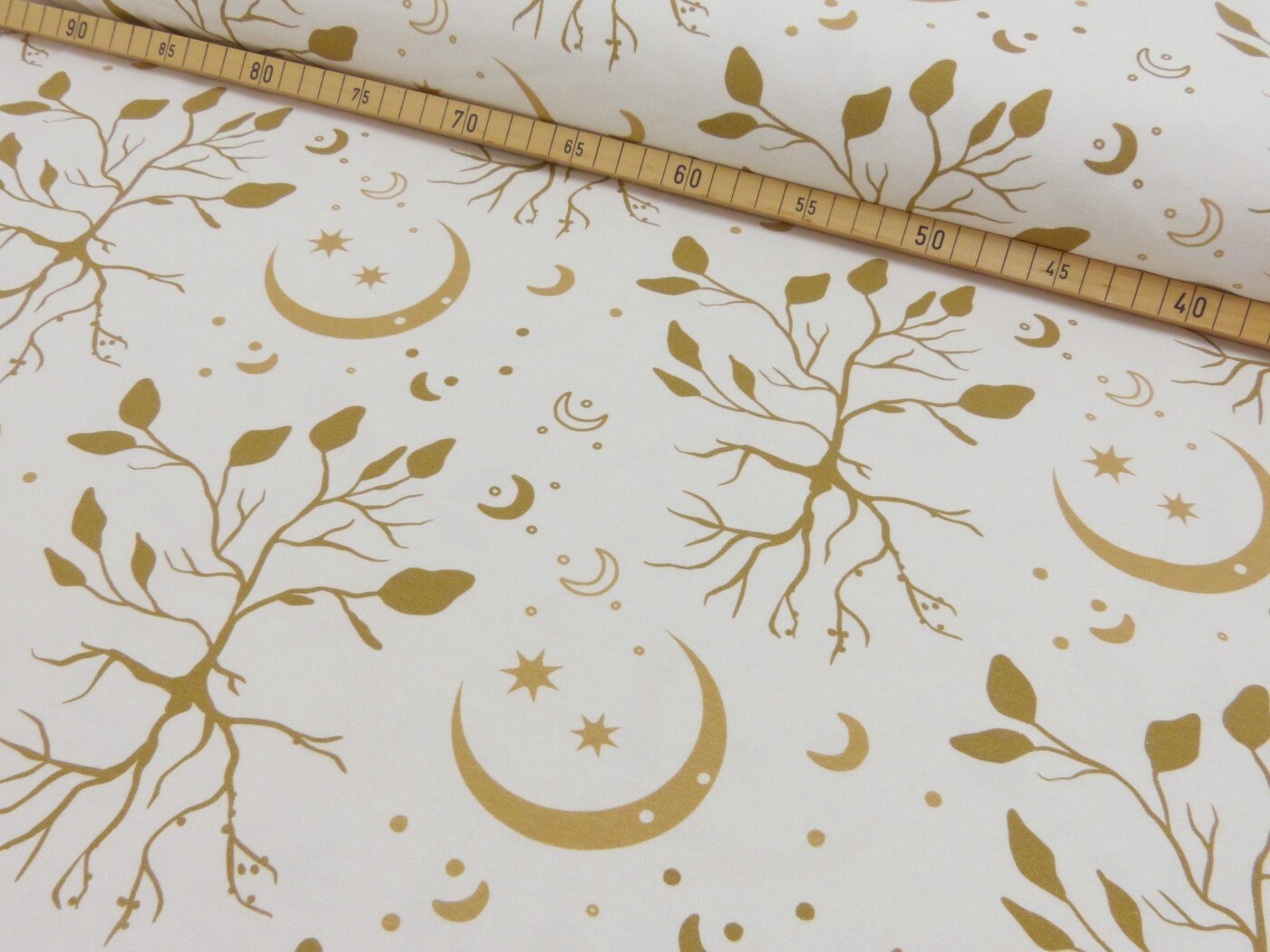 Baumwolljersey Stoff Boho - Blätter Baum und Mond - Leaves Tree & Moon - by Jessy Sewing, hell