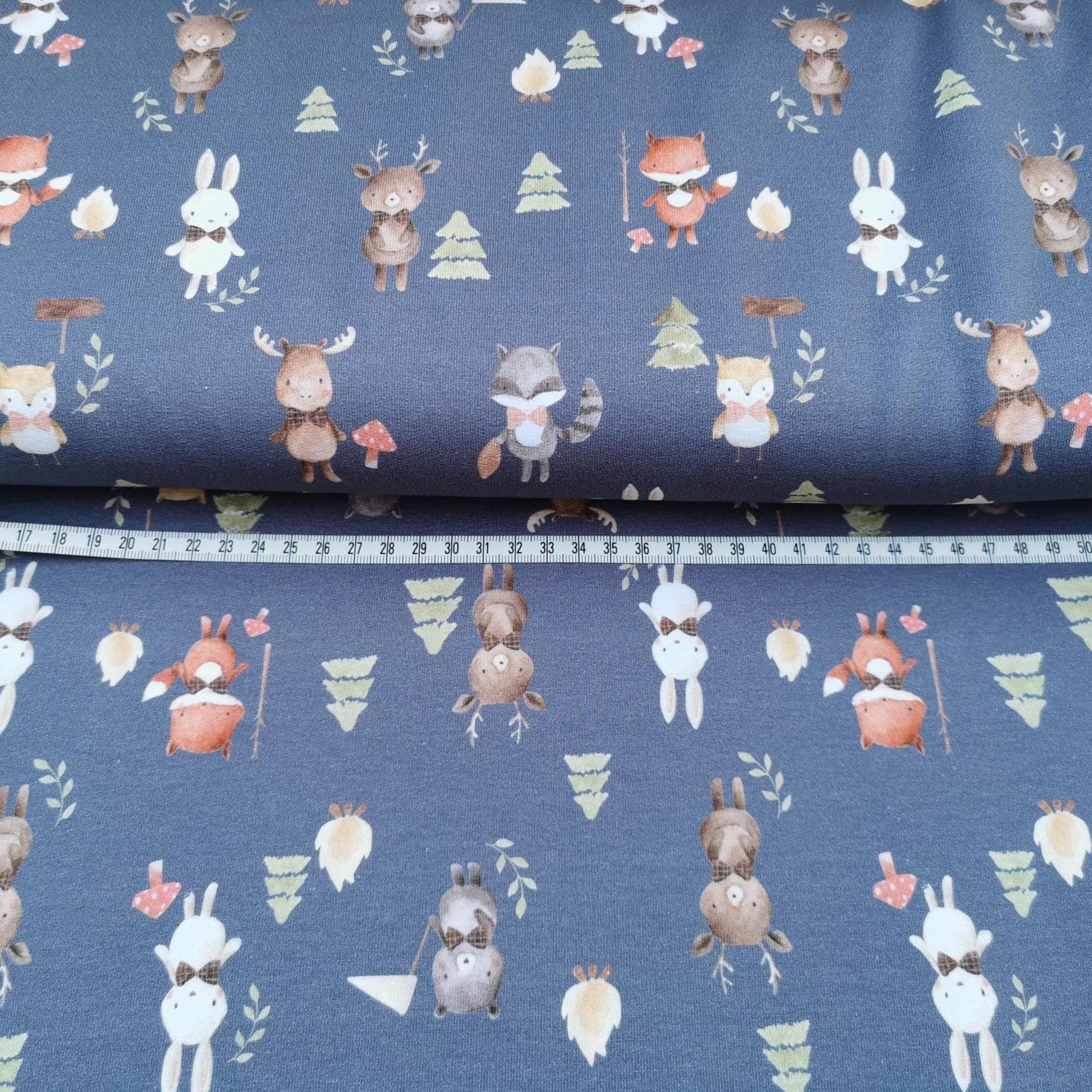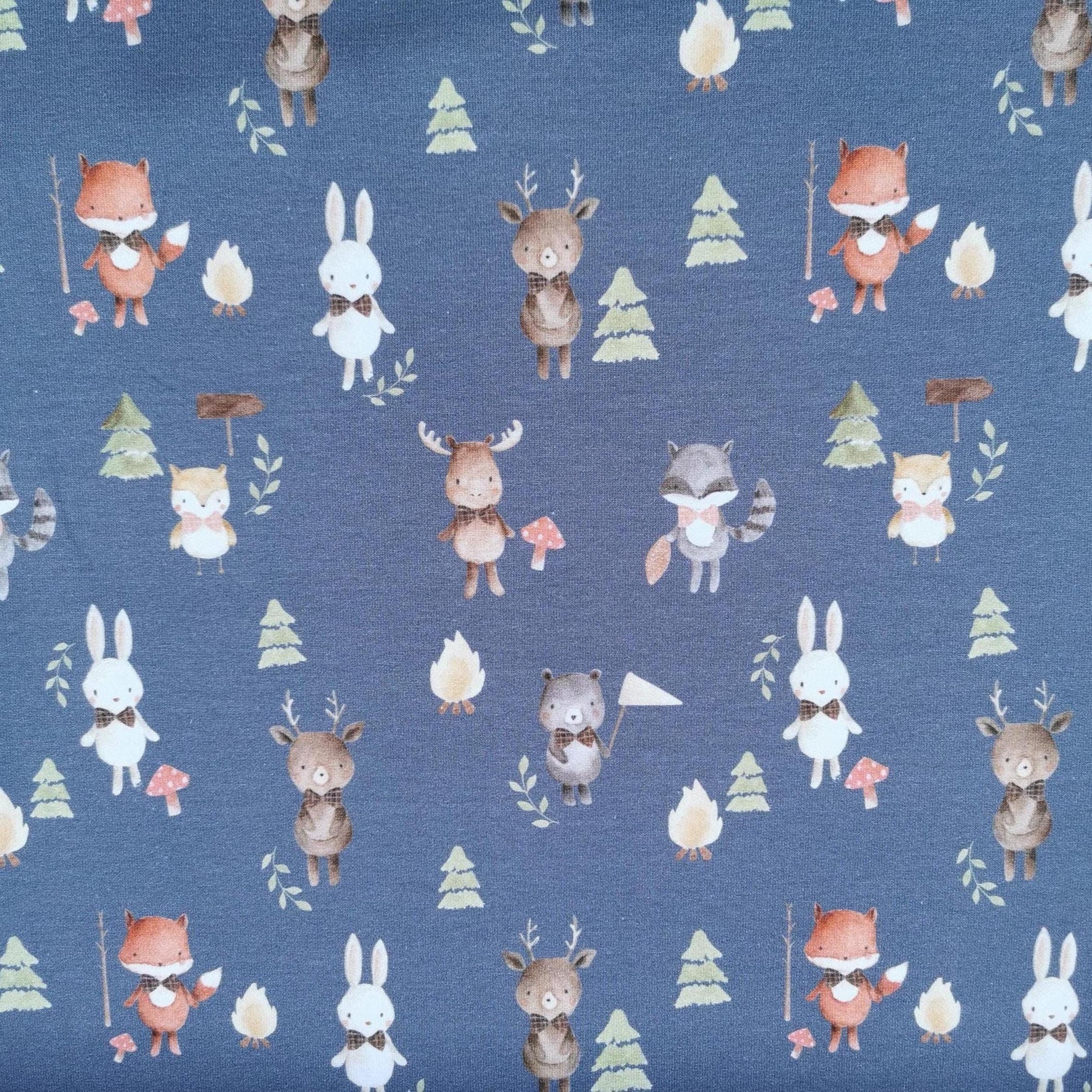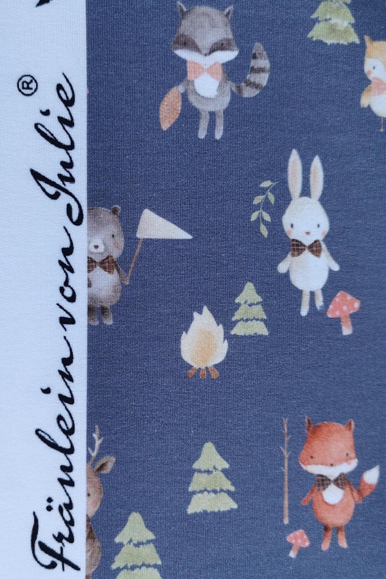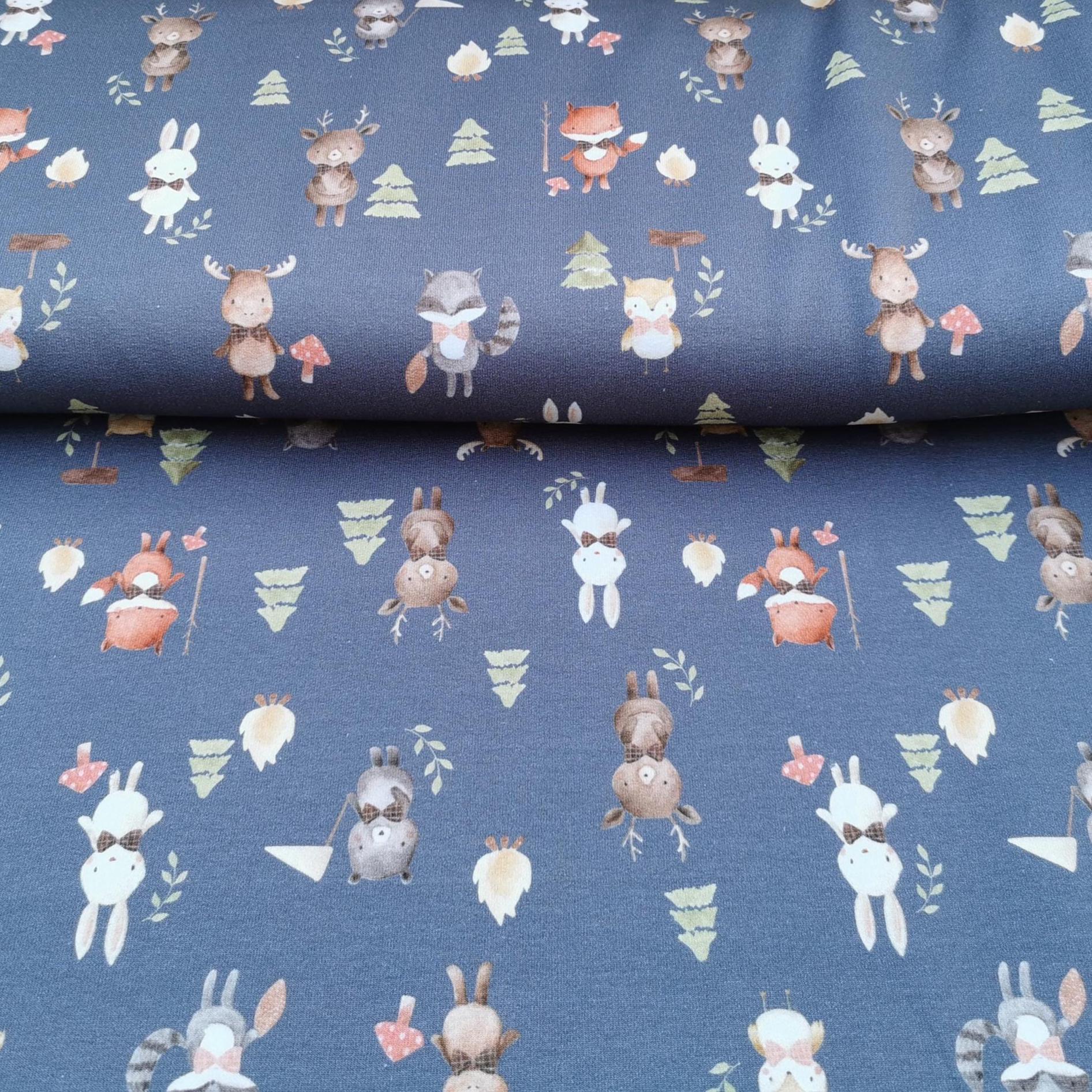 French Terry Druck kleine Waldtiere Hase, Bär, Fuchs, Hirsch auf dunklem Hintergrund | Fräulein von Julie