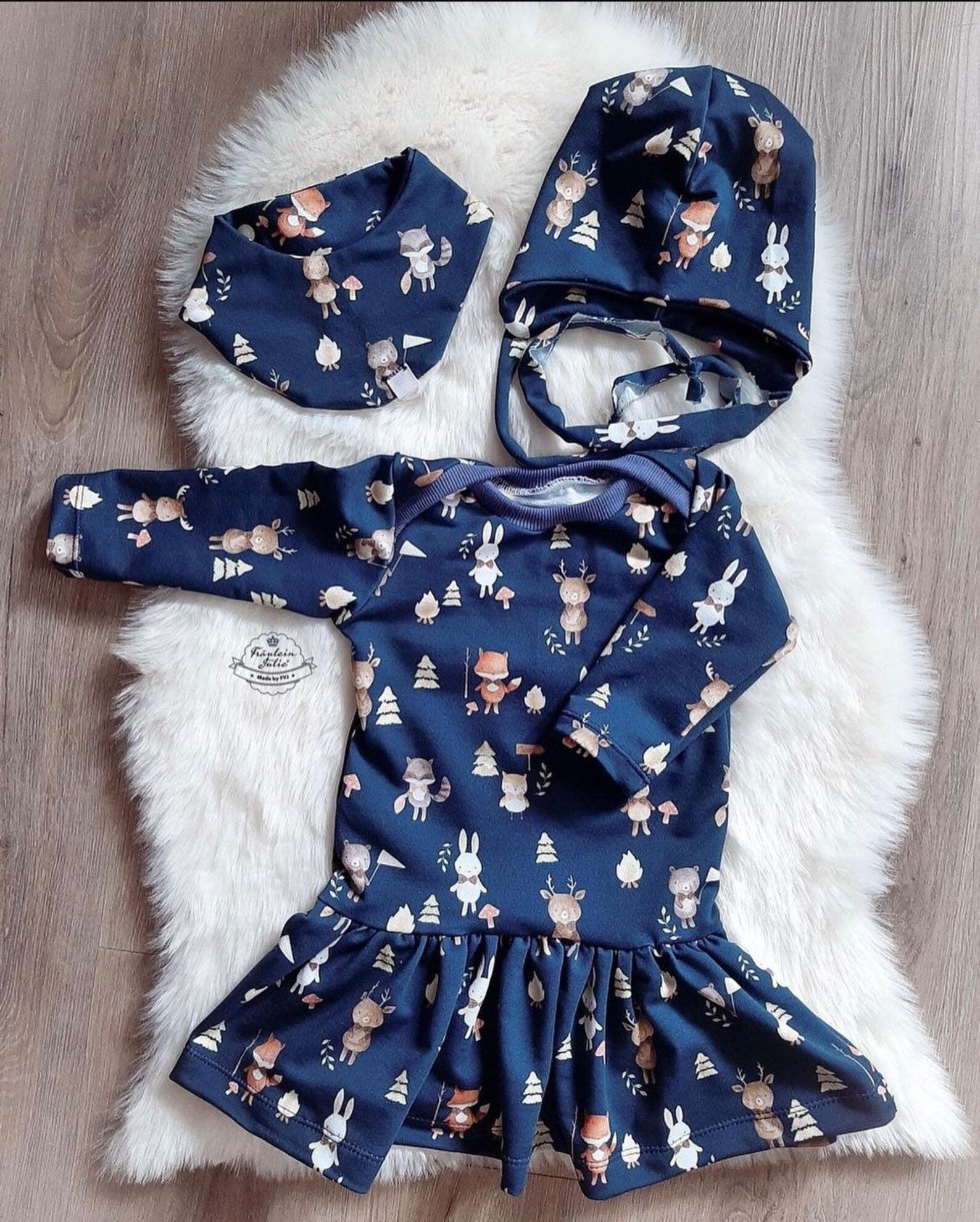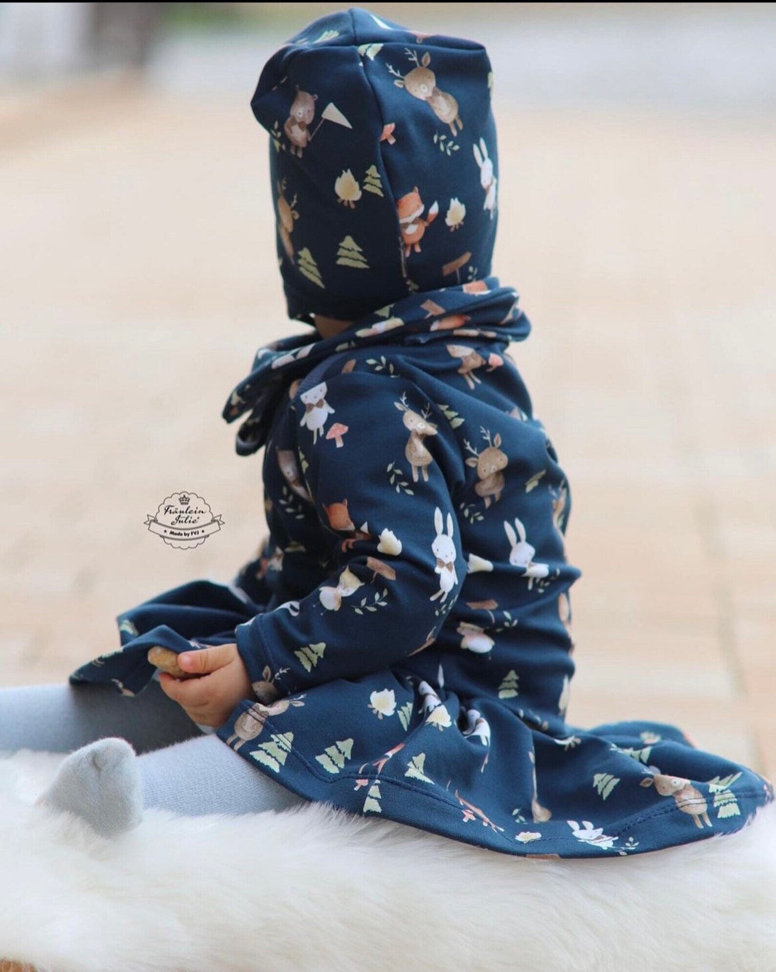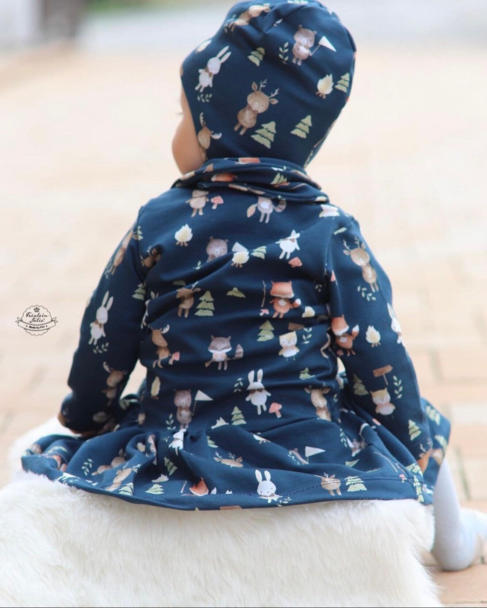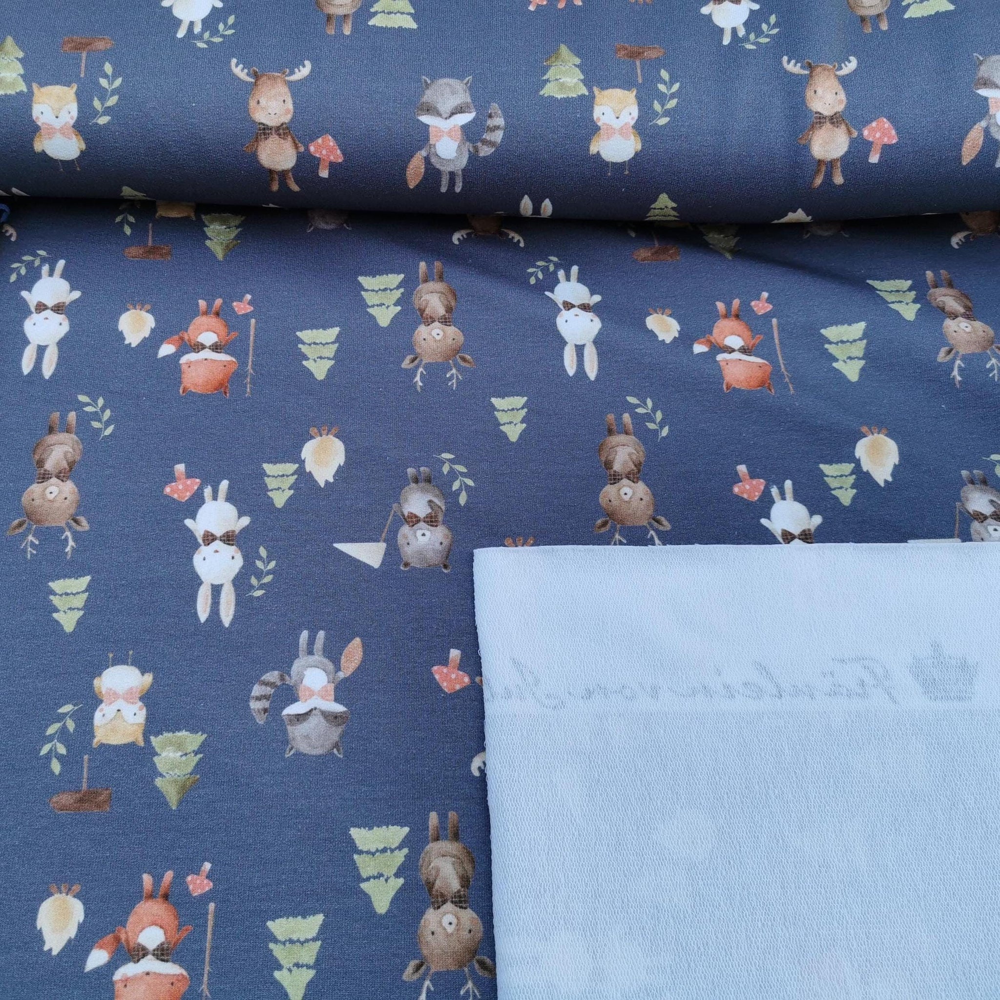 French Terry Druck kleine Waldtiere Hase, Bär, Fuchs, Hirsch auf dunklem Hintergrund | Fräulein von Julie