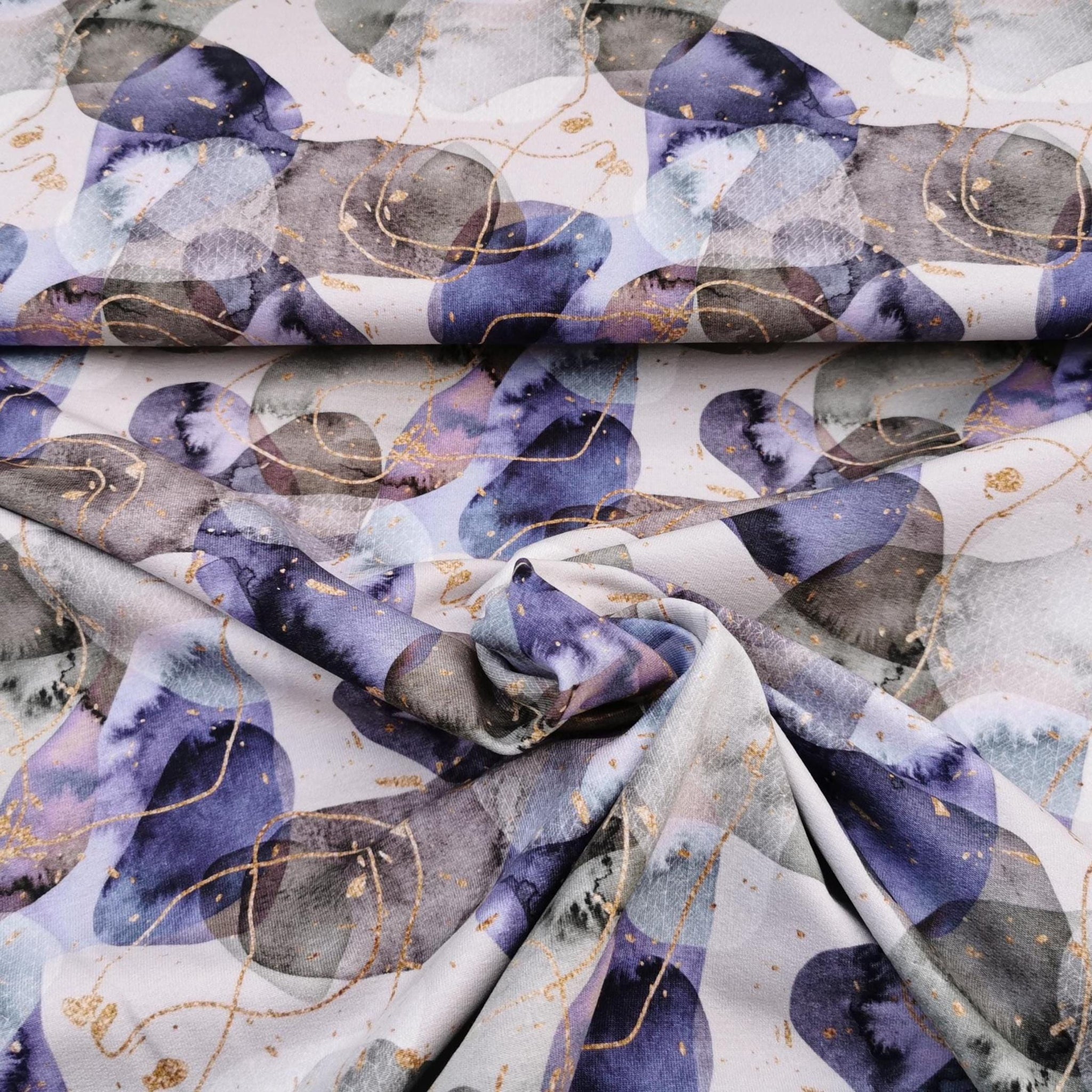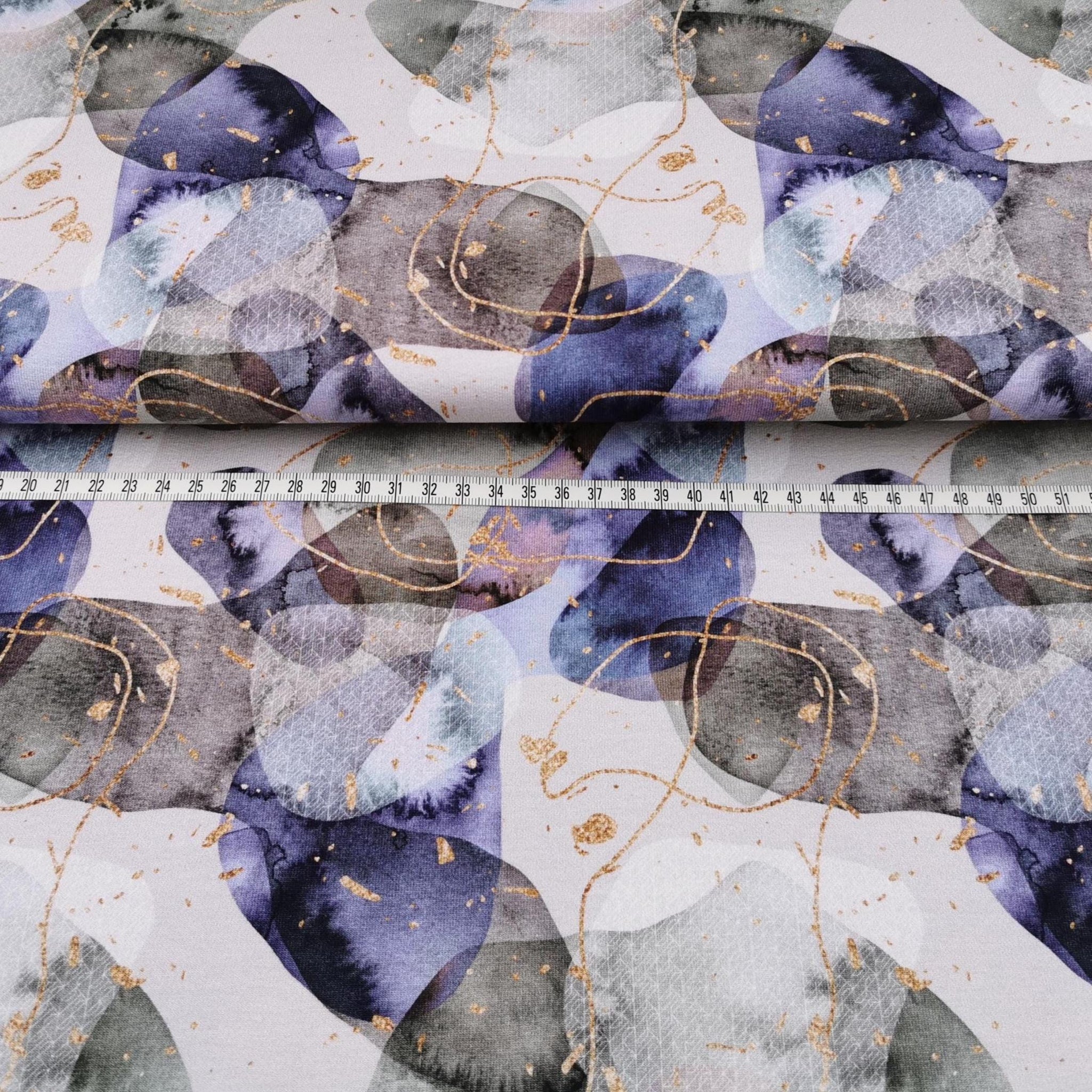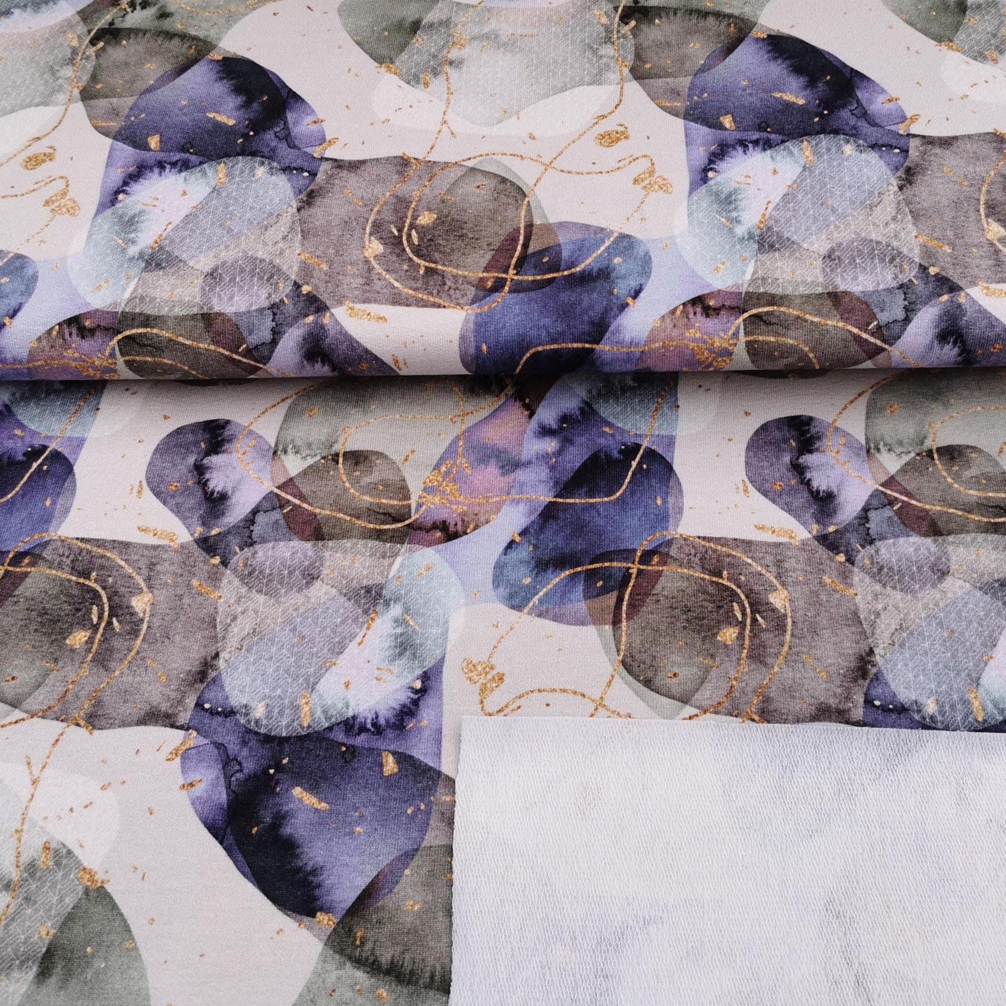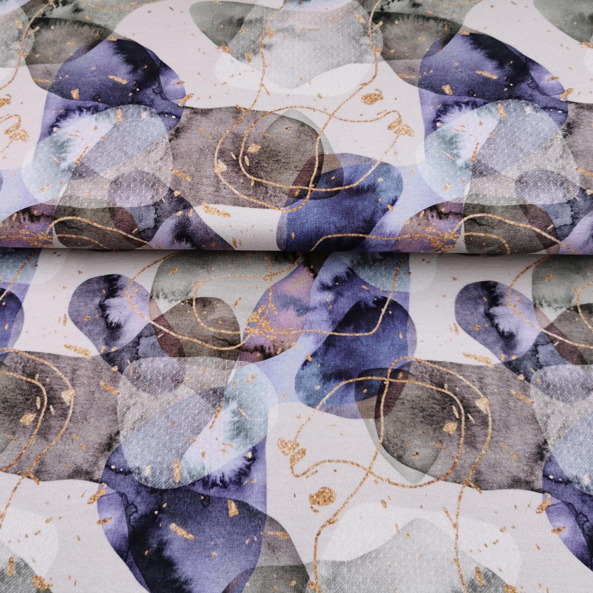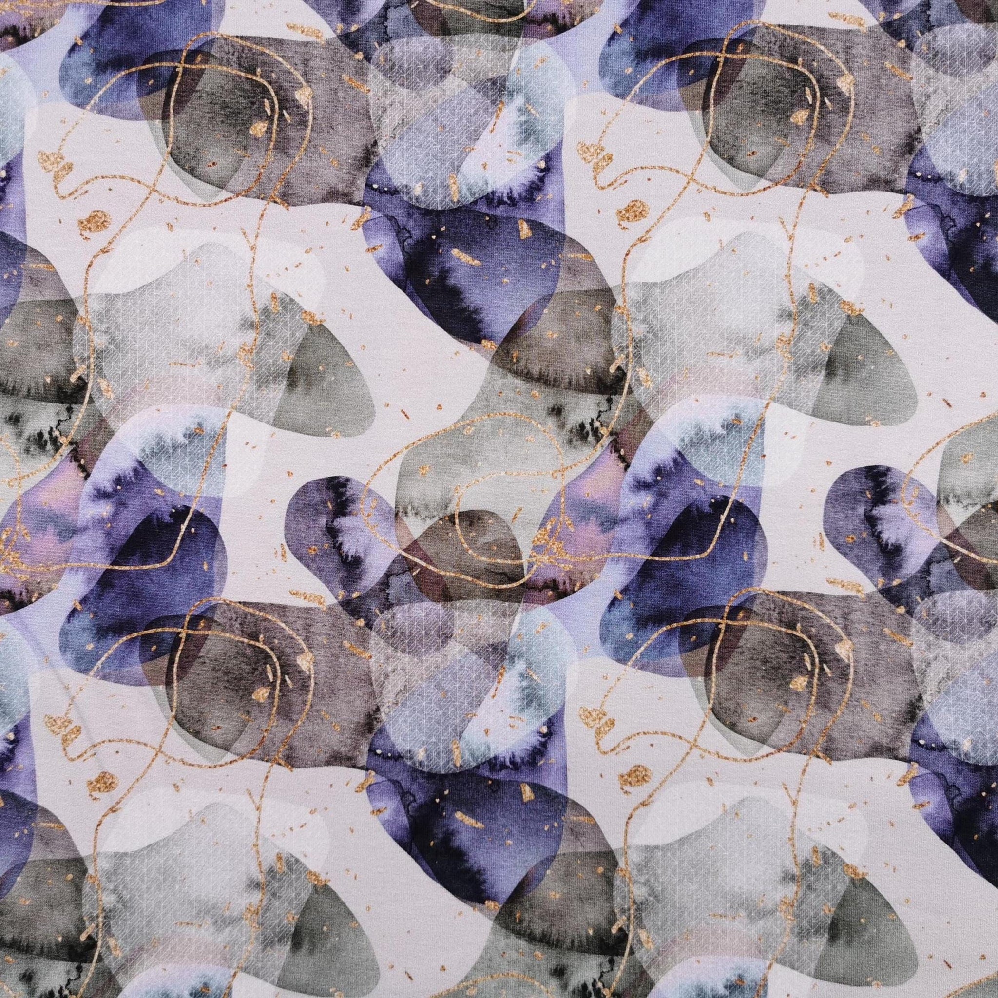 French Terry Stoff "Annika" abstraktes Muster violett, mit goldenen Linien