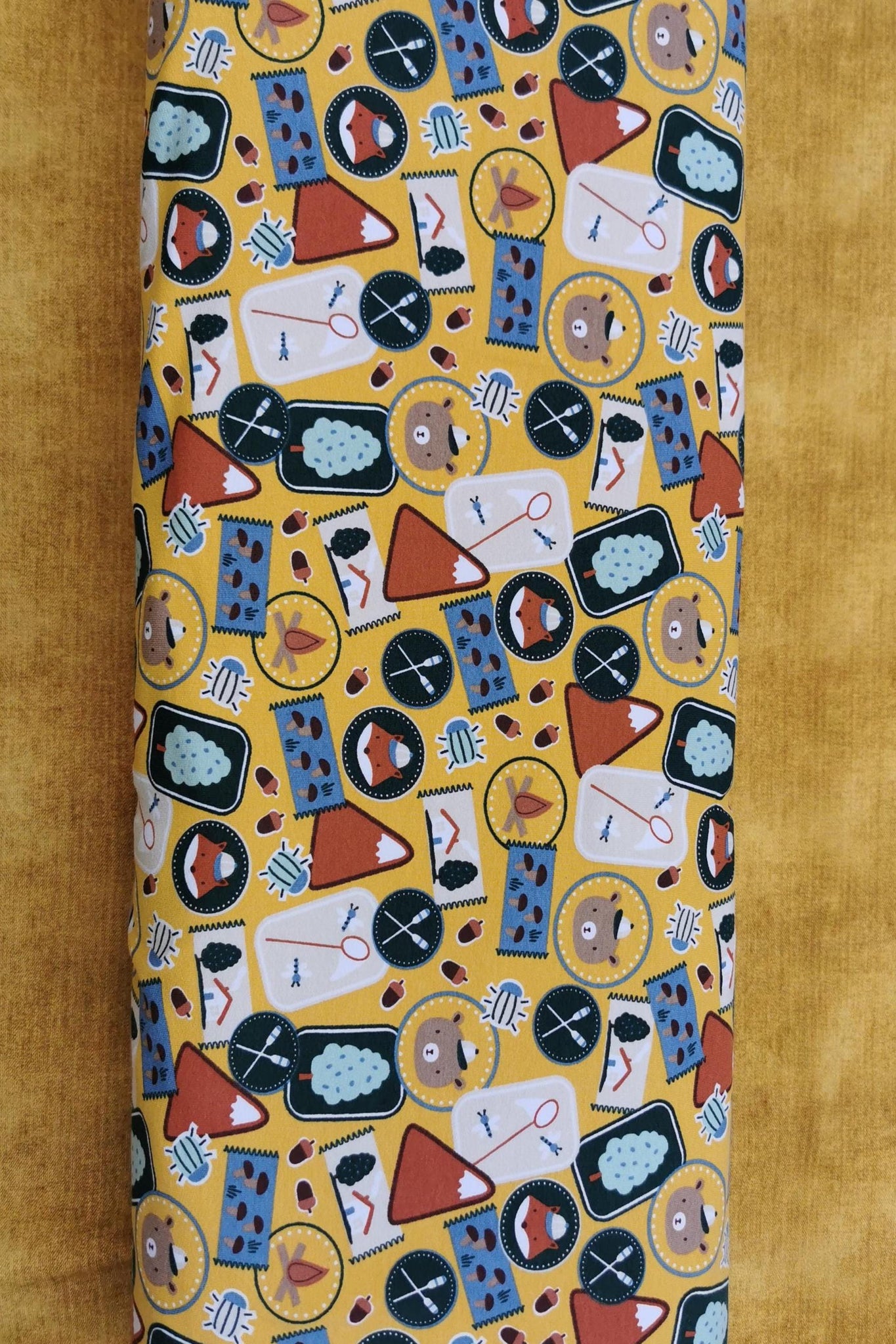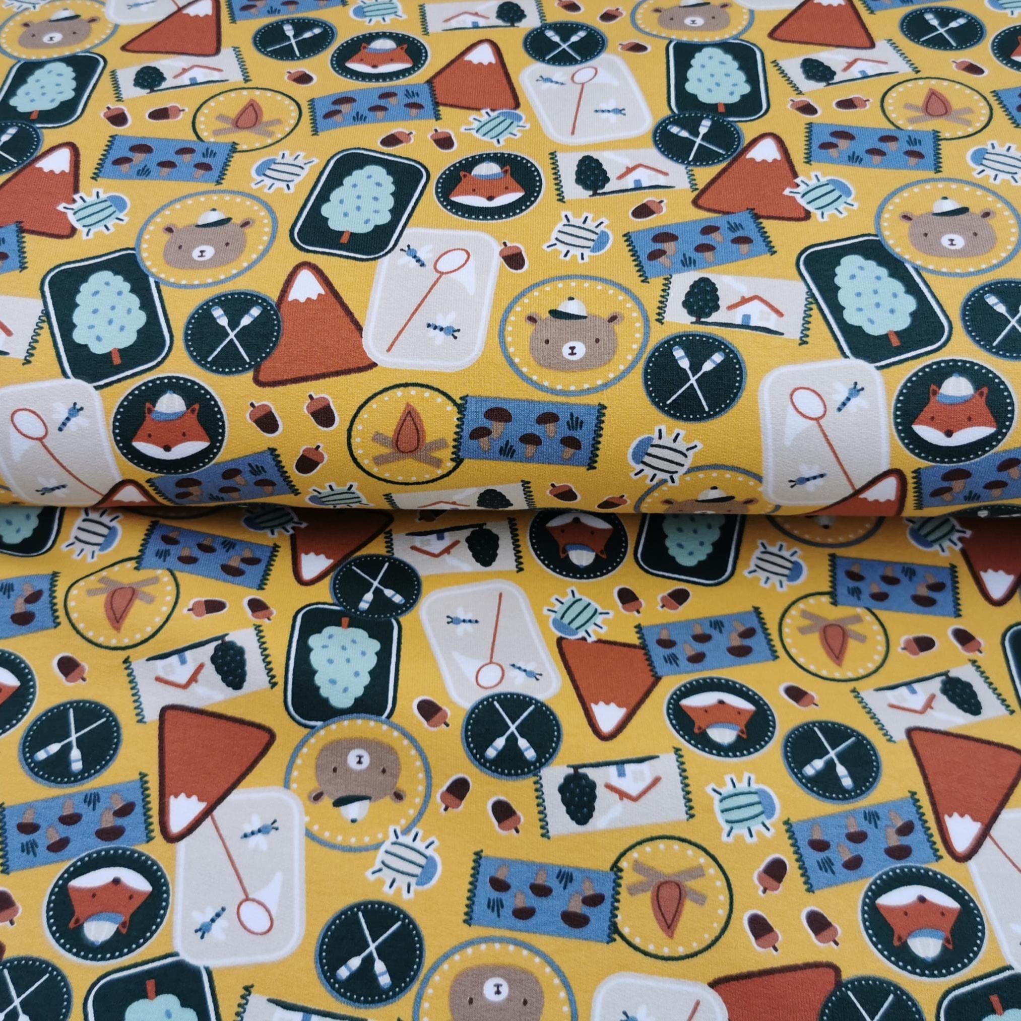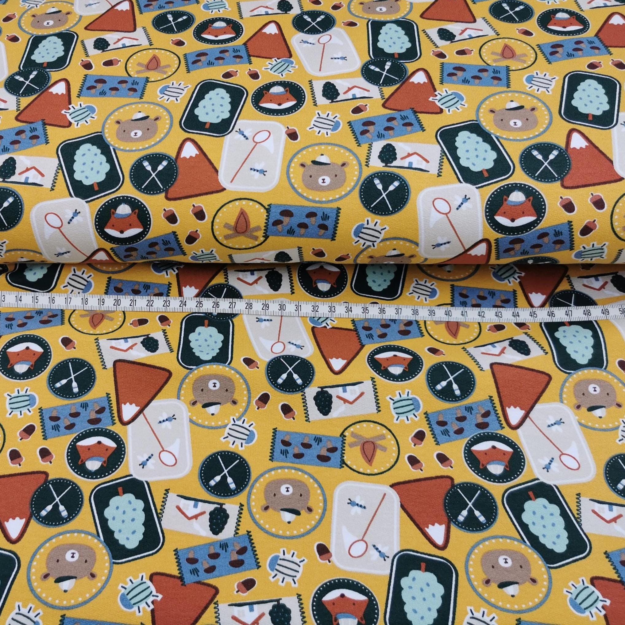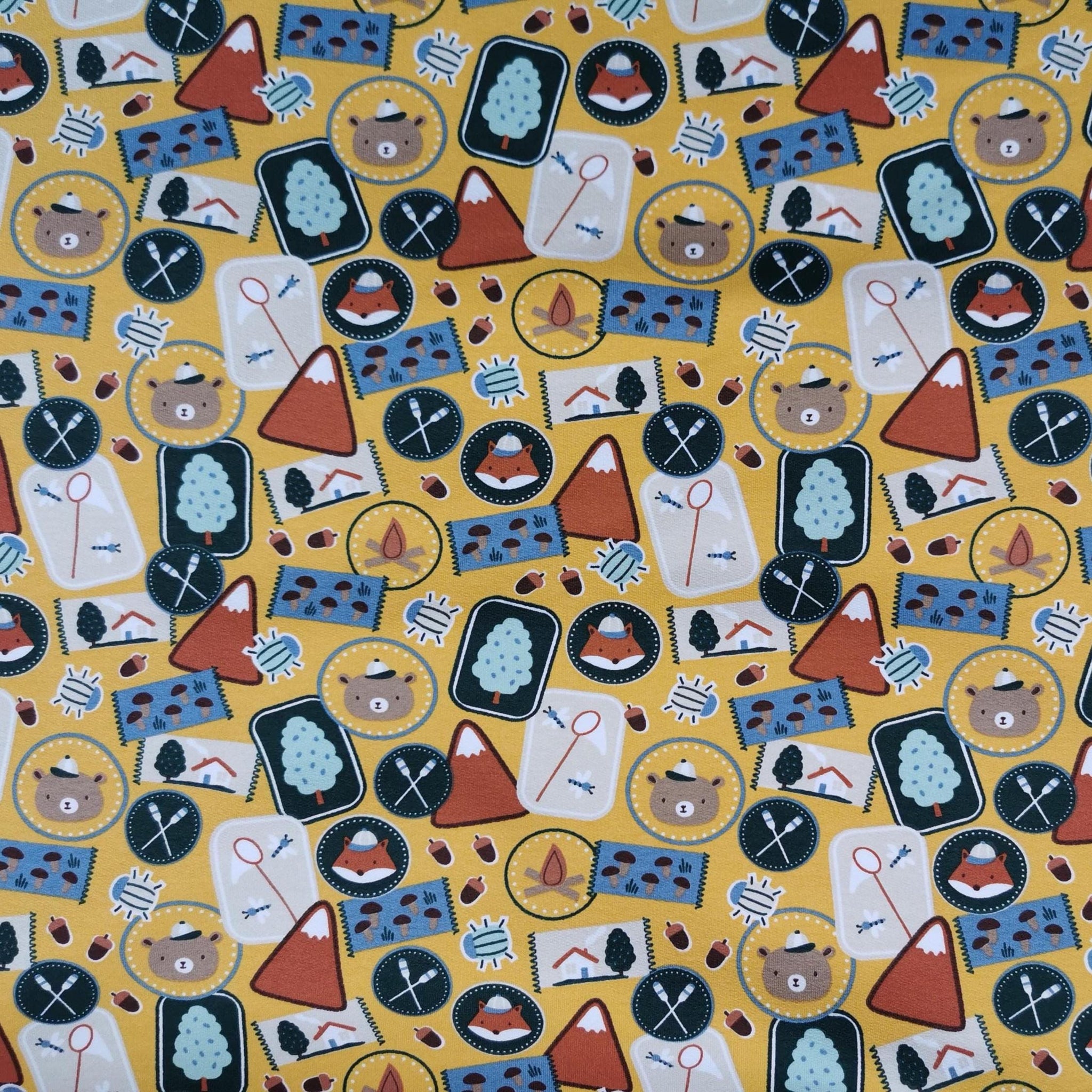 French-Terry Stoff Bär & Fuchs gelber Hintergrund | Julie Kids Fashion
