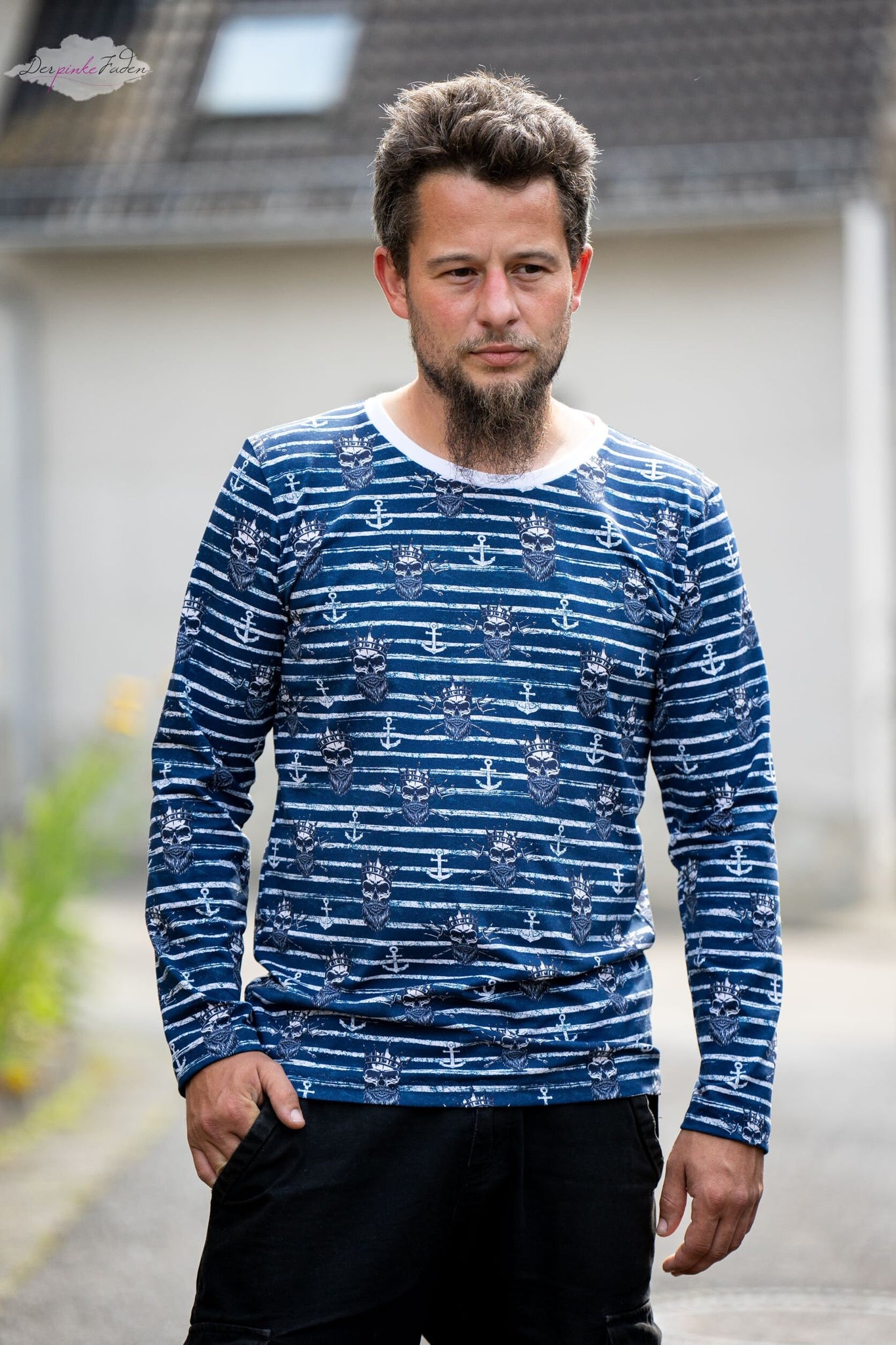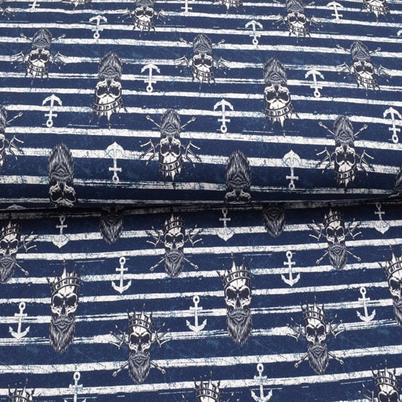French Terry Stoff - King of the deep, Piraten maritim dunkelblau | KATINOH