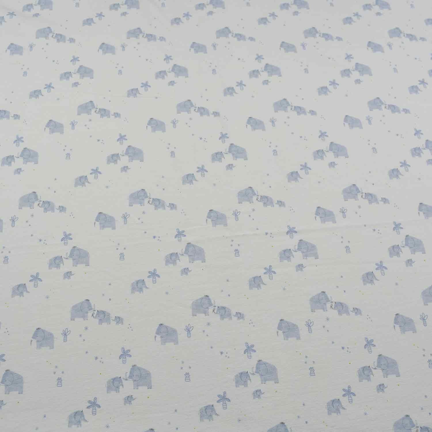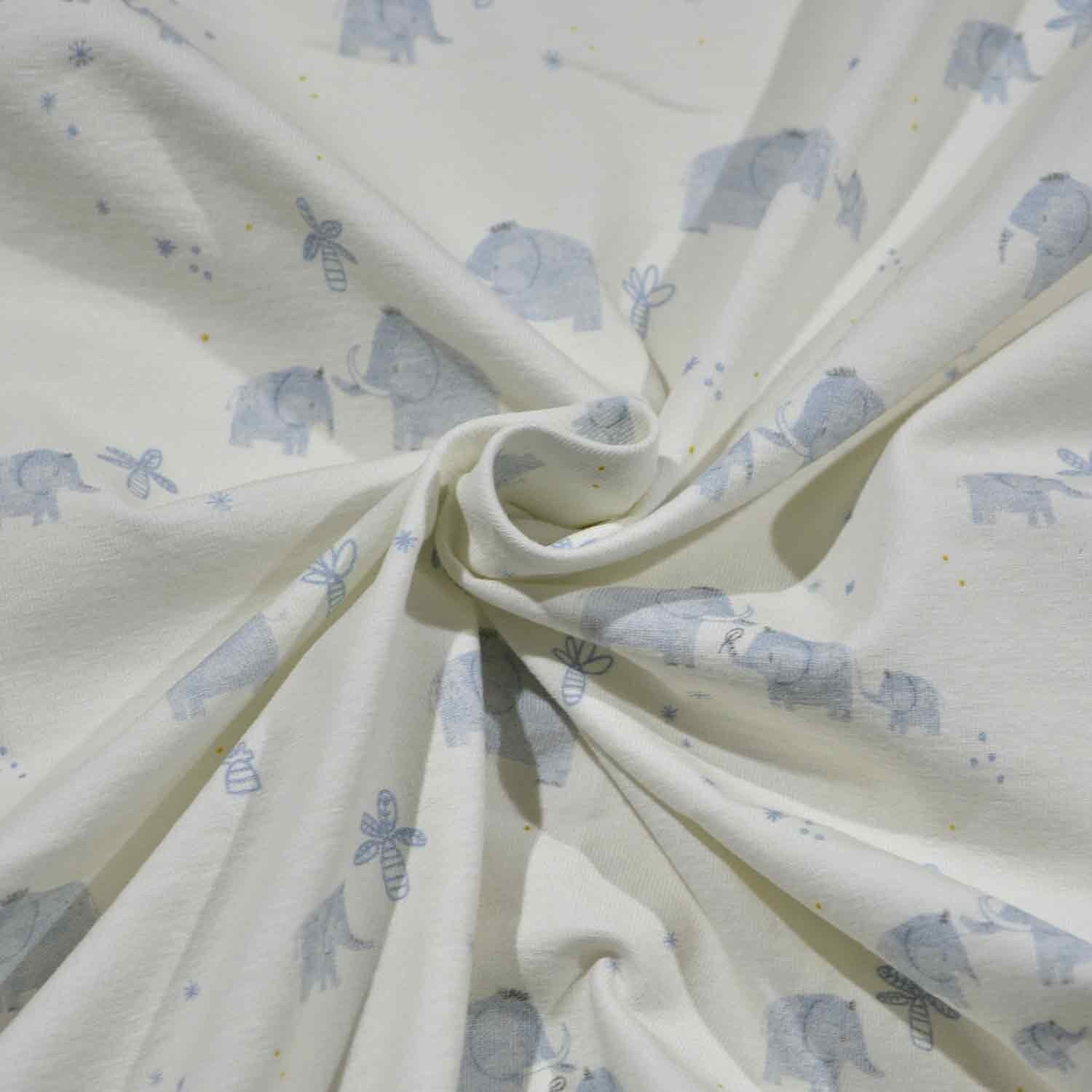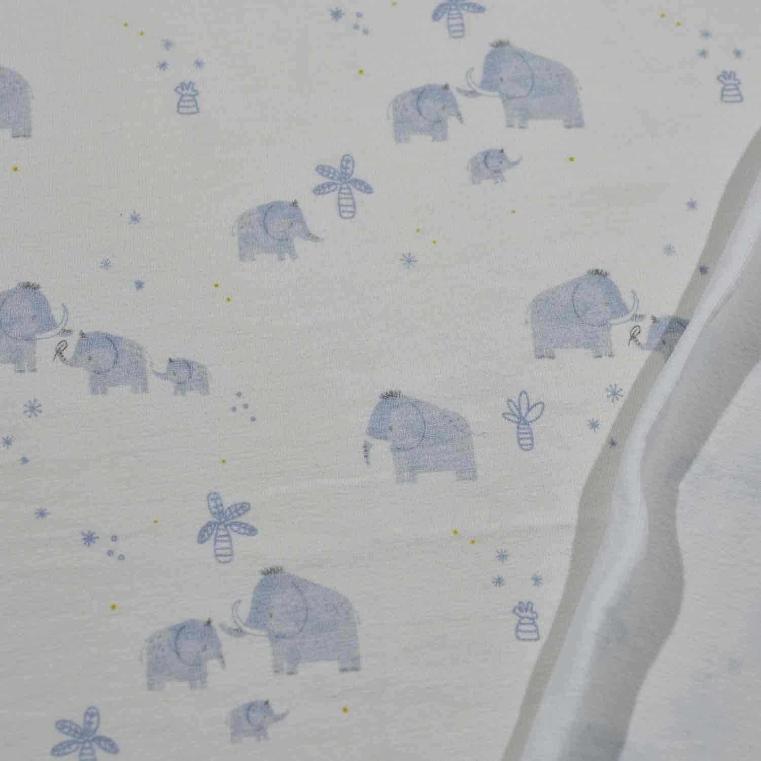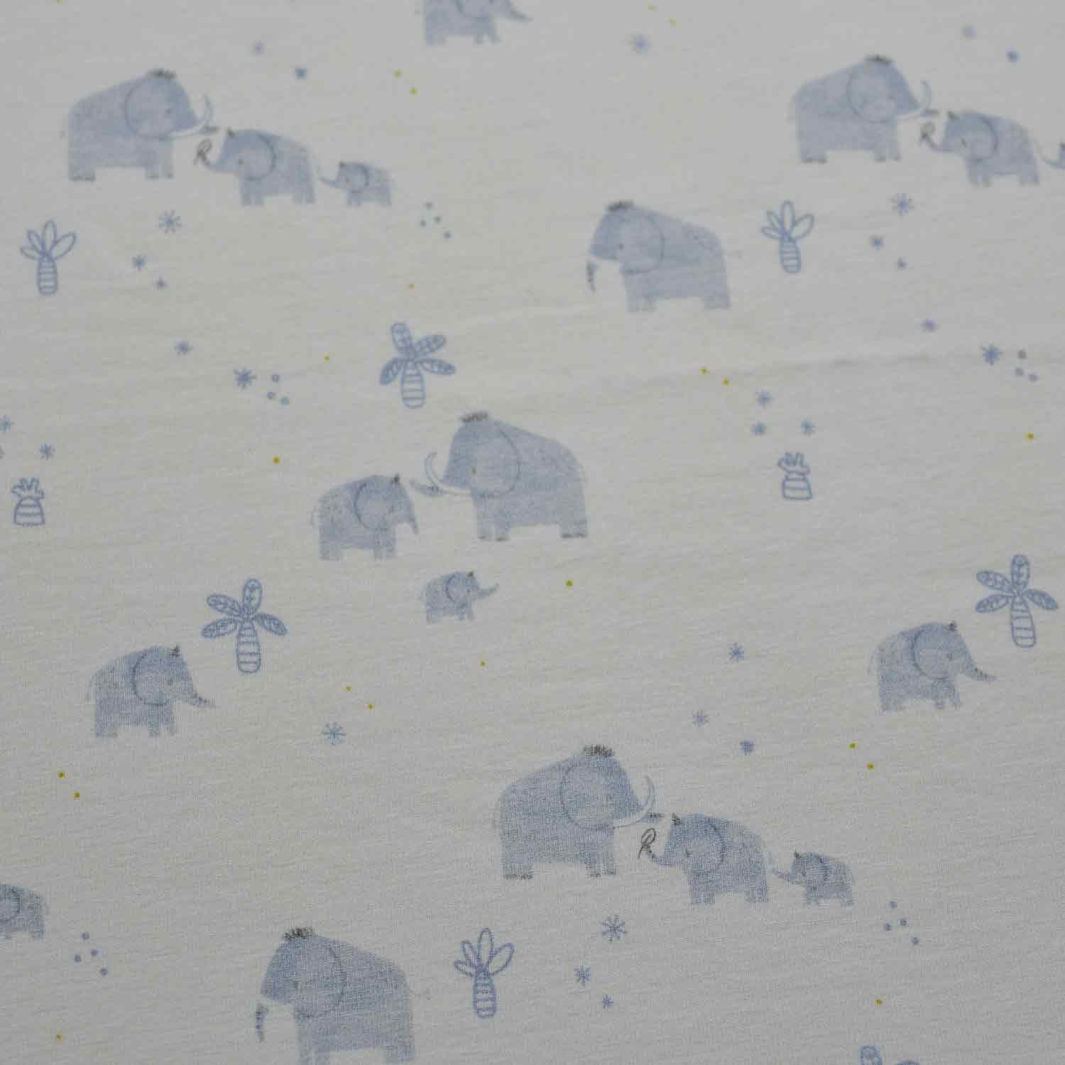 Jersey Stoff "Dina" Mammute / Elefanten mit Palmen blau weiß