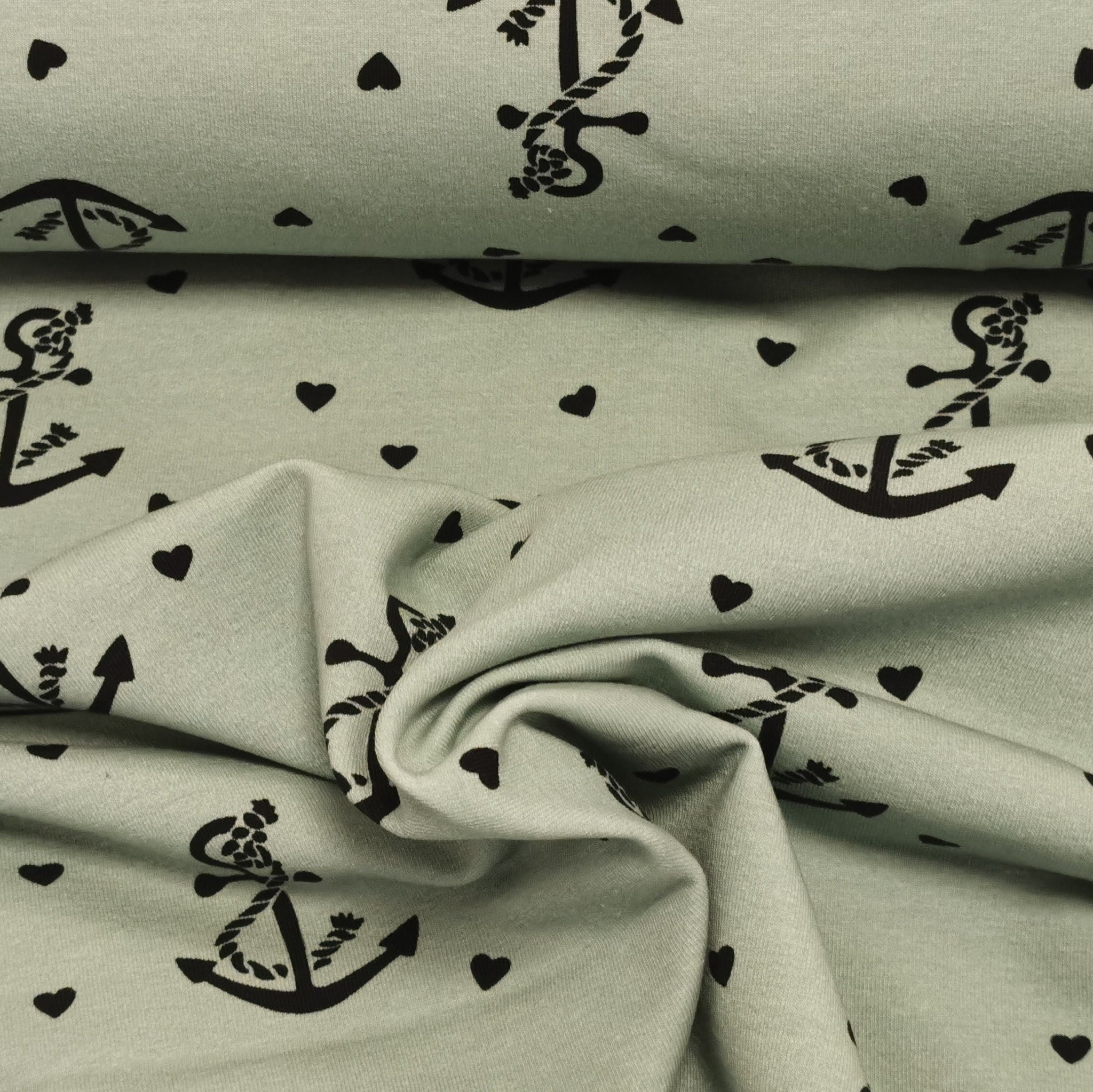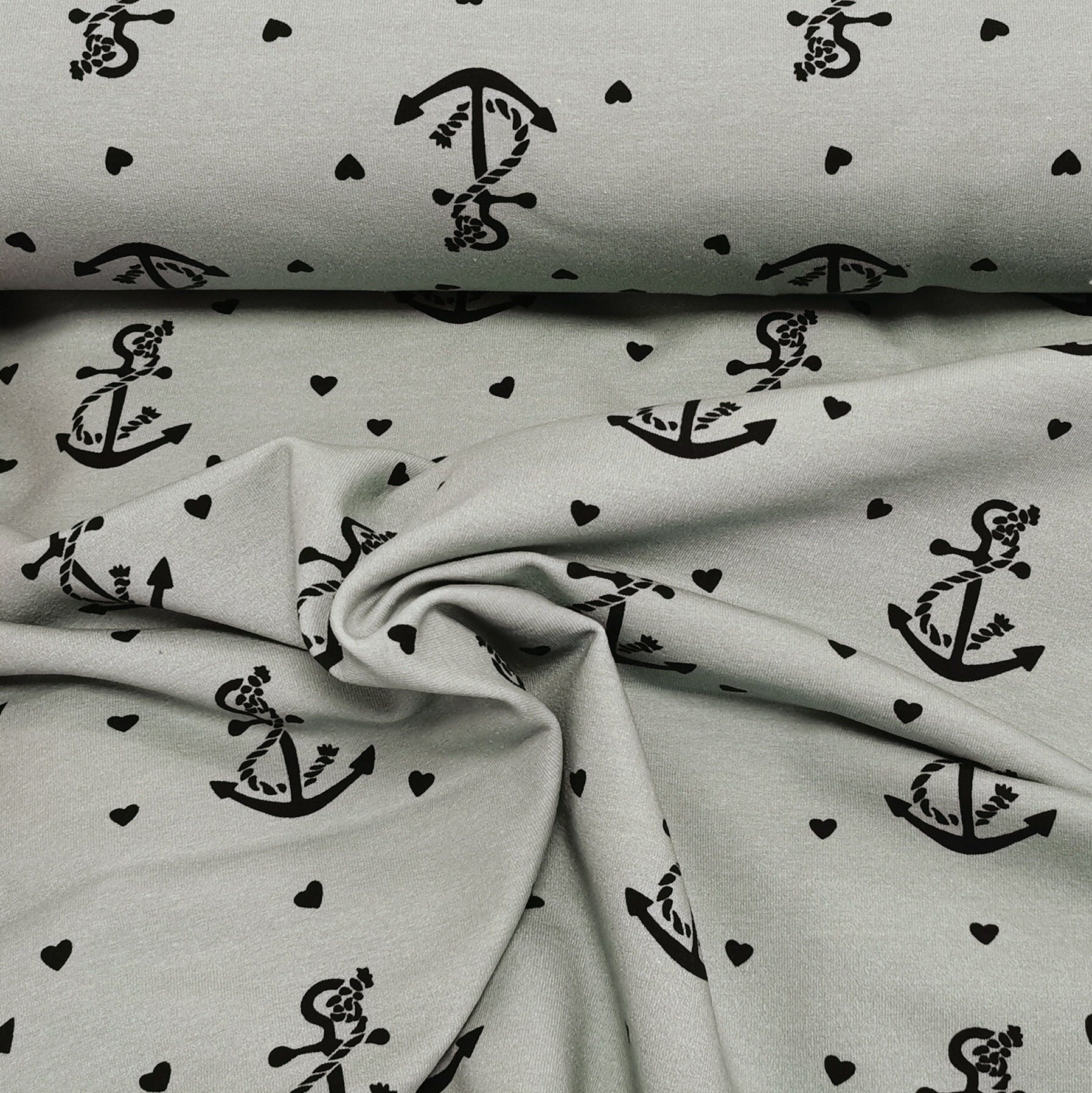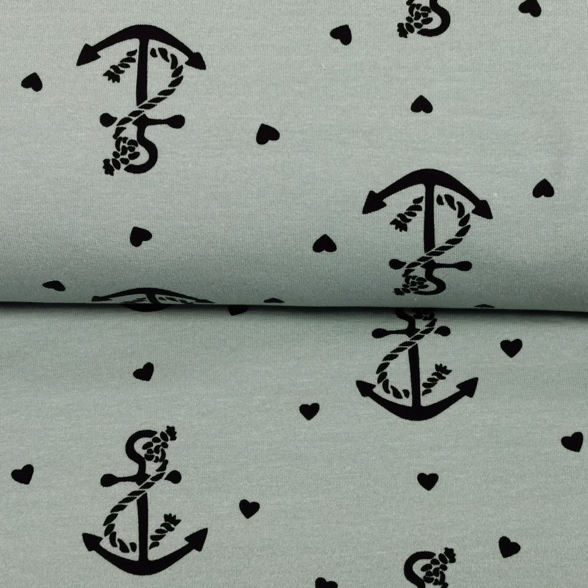 maritimer French Terry Stoff mit Ankern auf mintgrünen Hintergrund | Fräulein von Julie