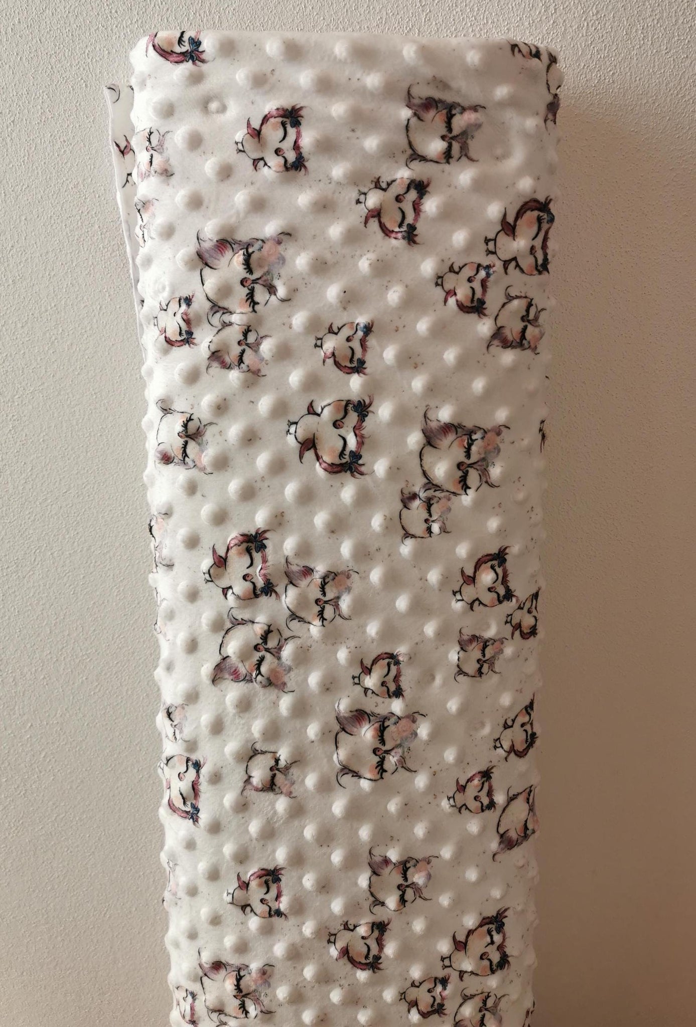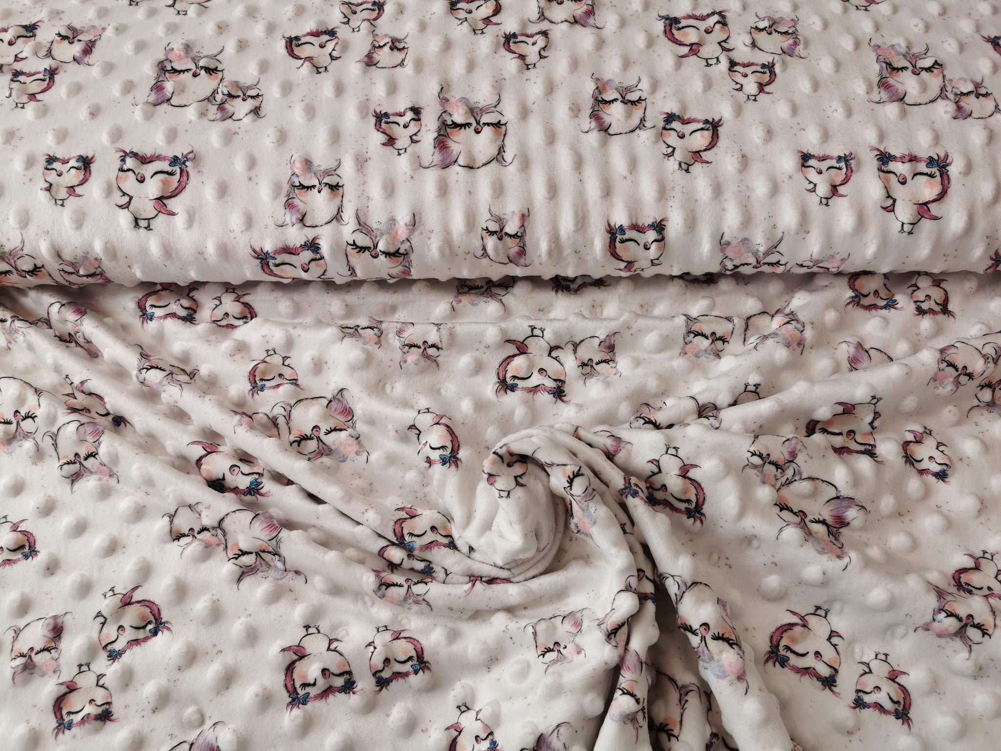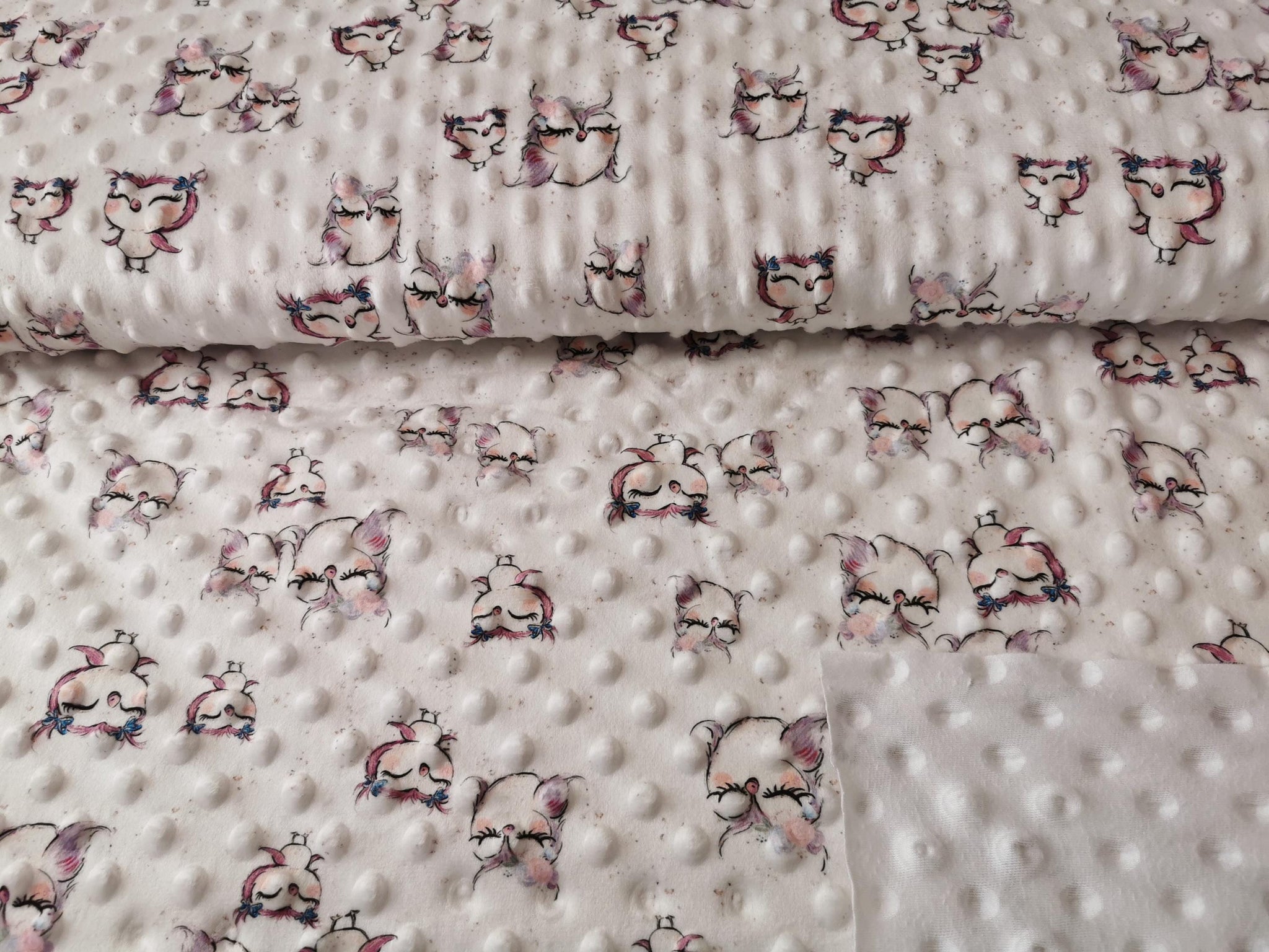 Minky Fleece Stoff weiß mit kleinen Eulen