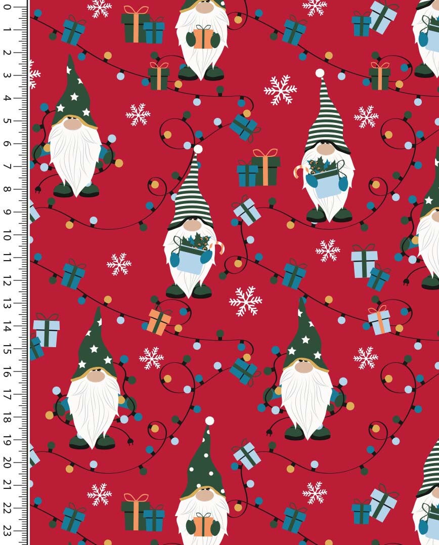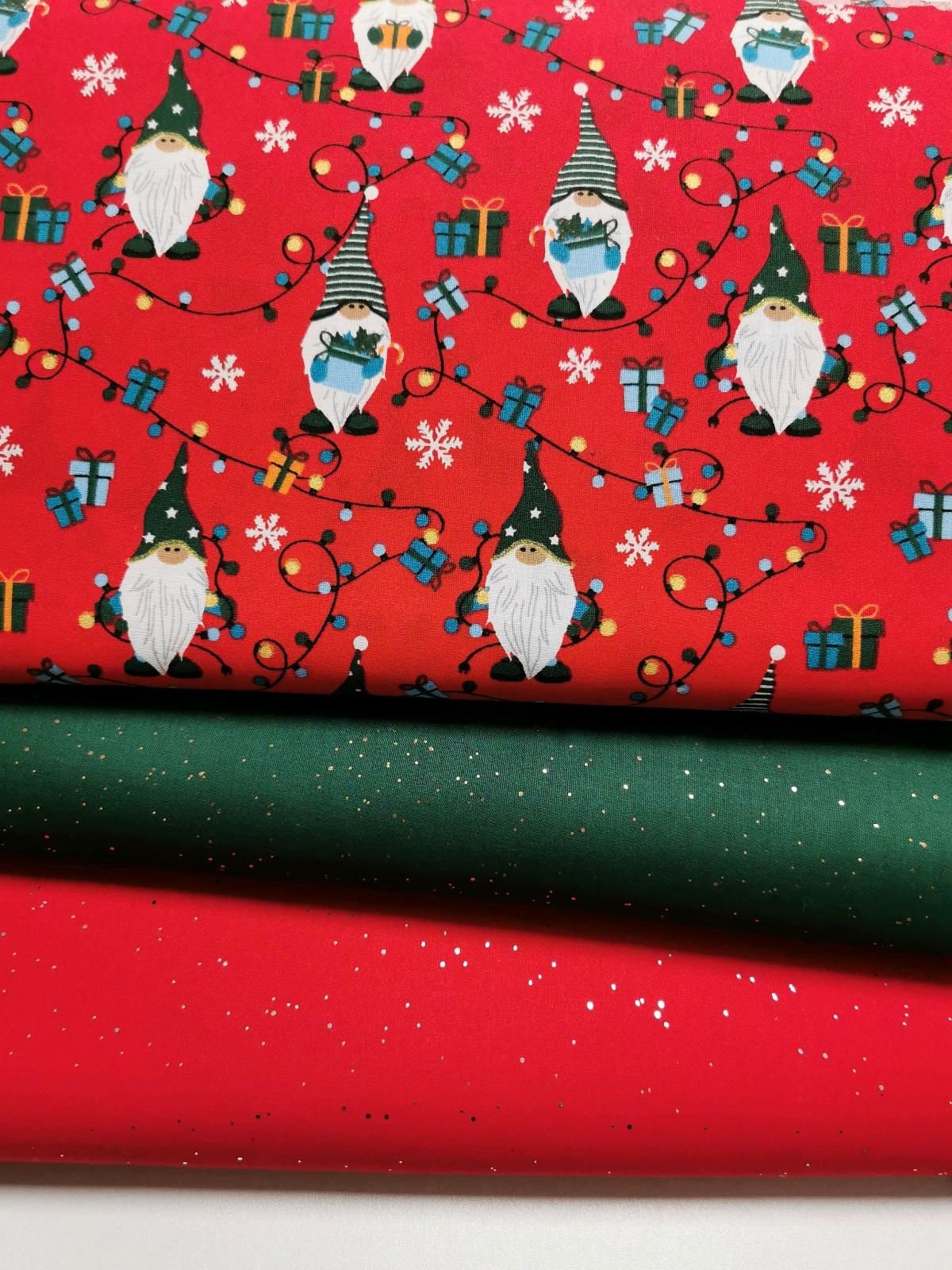 Reststück: Baumwoll Stoff Wichtel Weihnachten Geschenk Lichterkette grün rot; ca. 0,5m