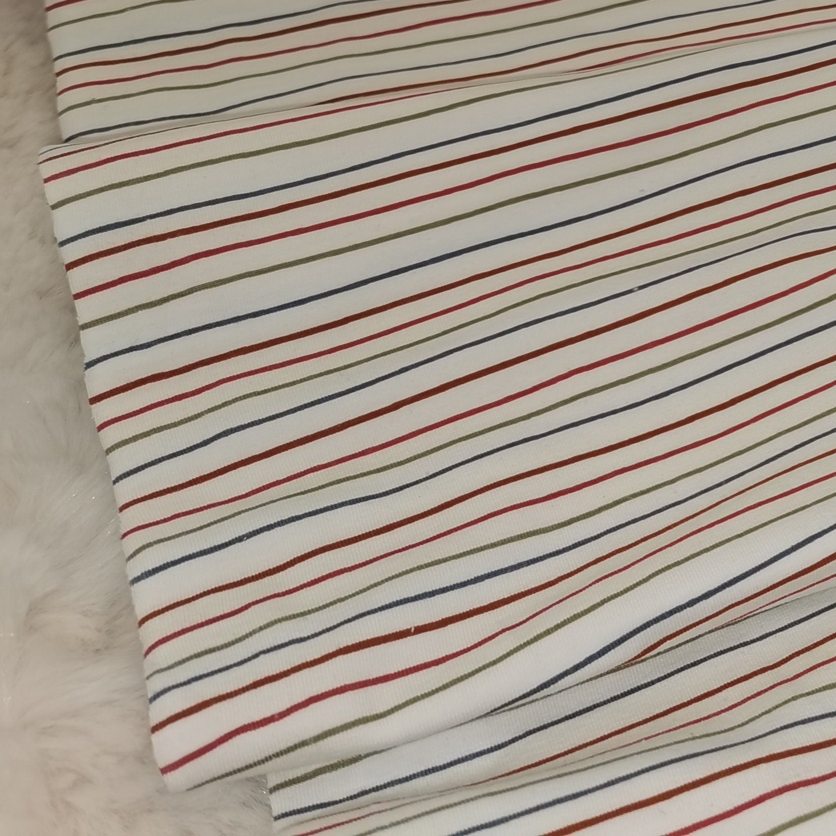 Reststück: Baumwolljersey weiß, mehrfarbig gestreift | Julie Kids Fashion; ca. 0,3m