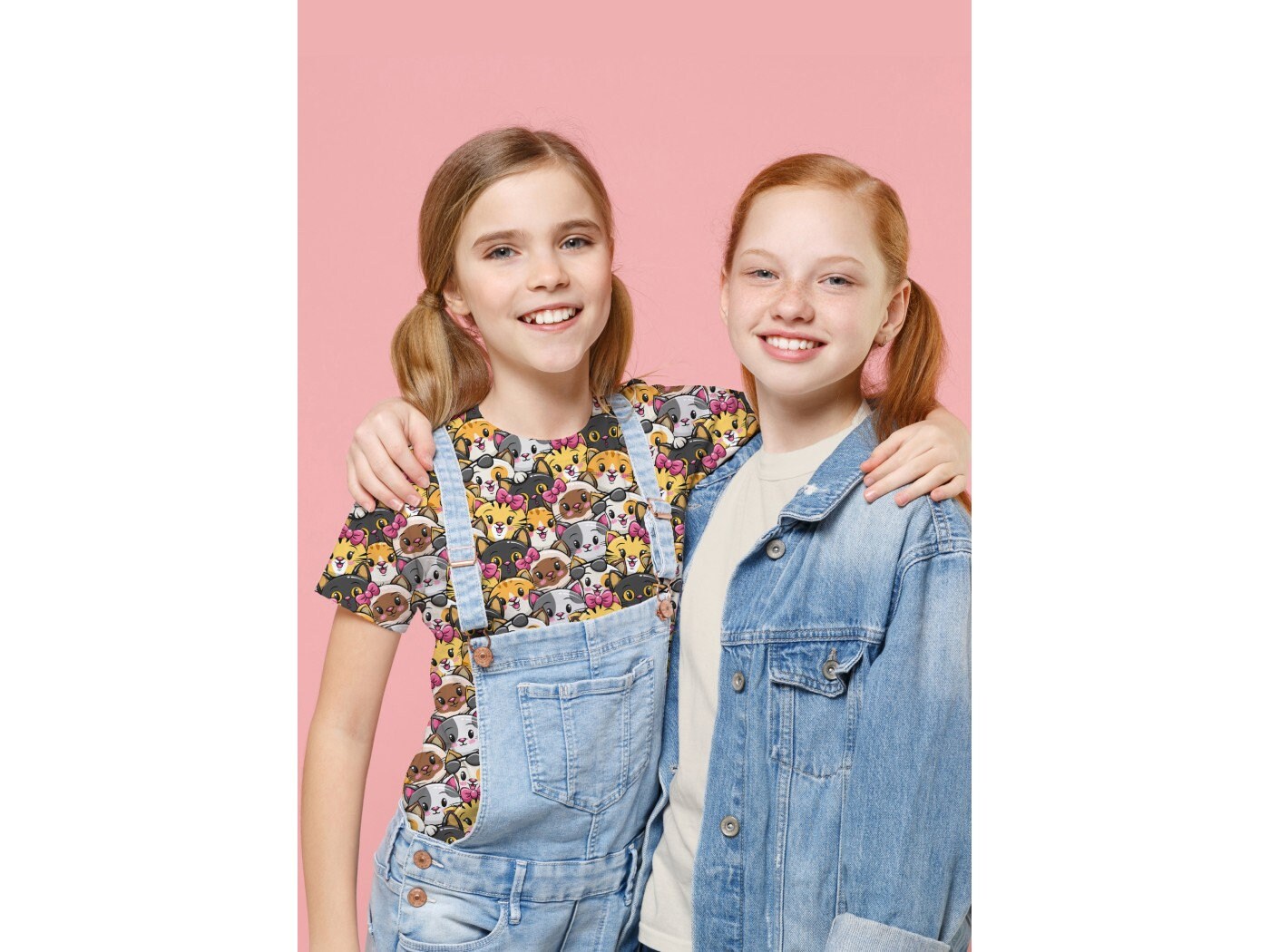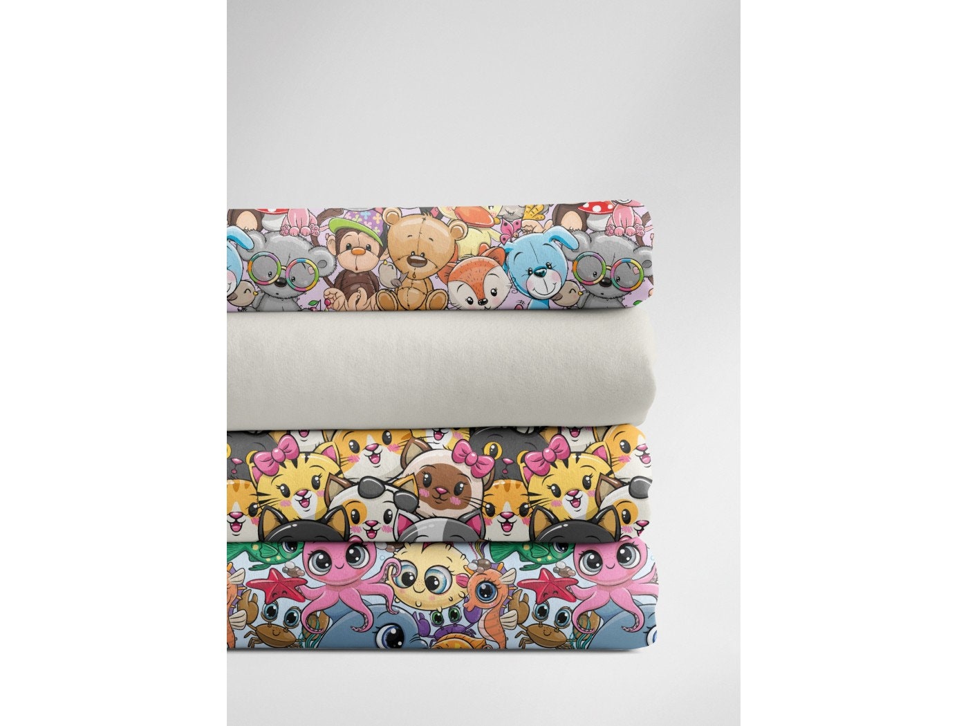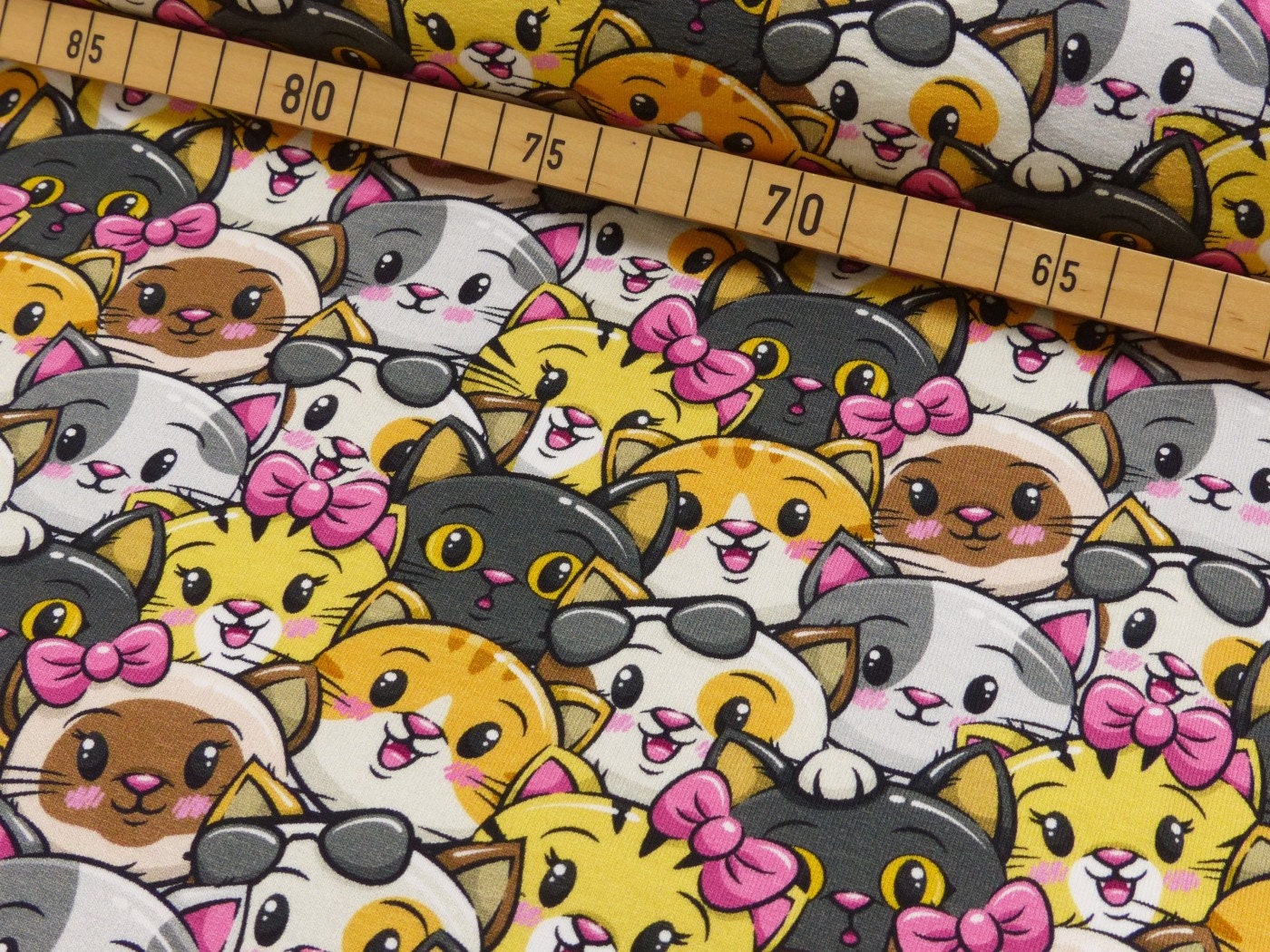 Reststück: French Terry Digital Druck "Partyanimals" bunter Comic Stoff mit Kätzchen | by Herzberührt; ca. 1,2m