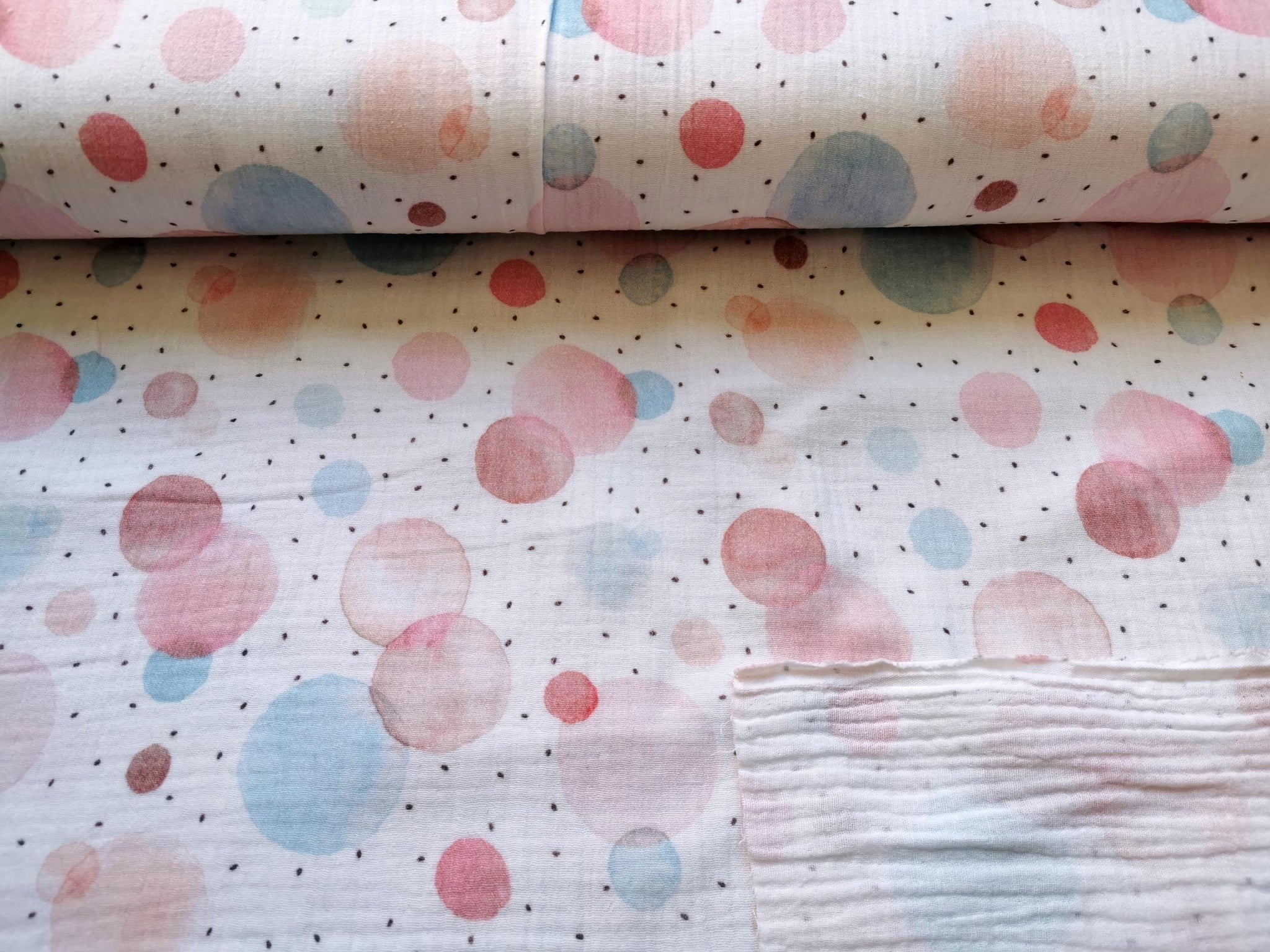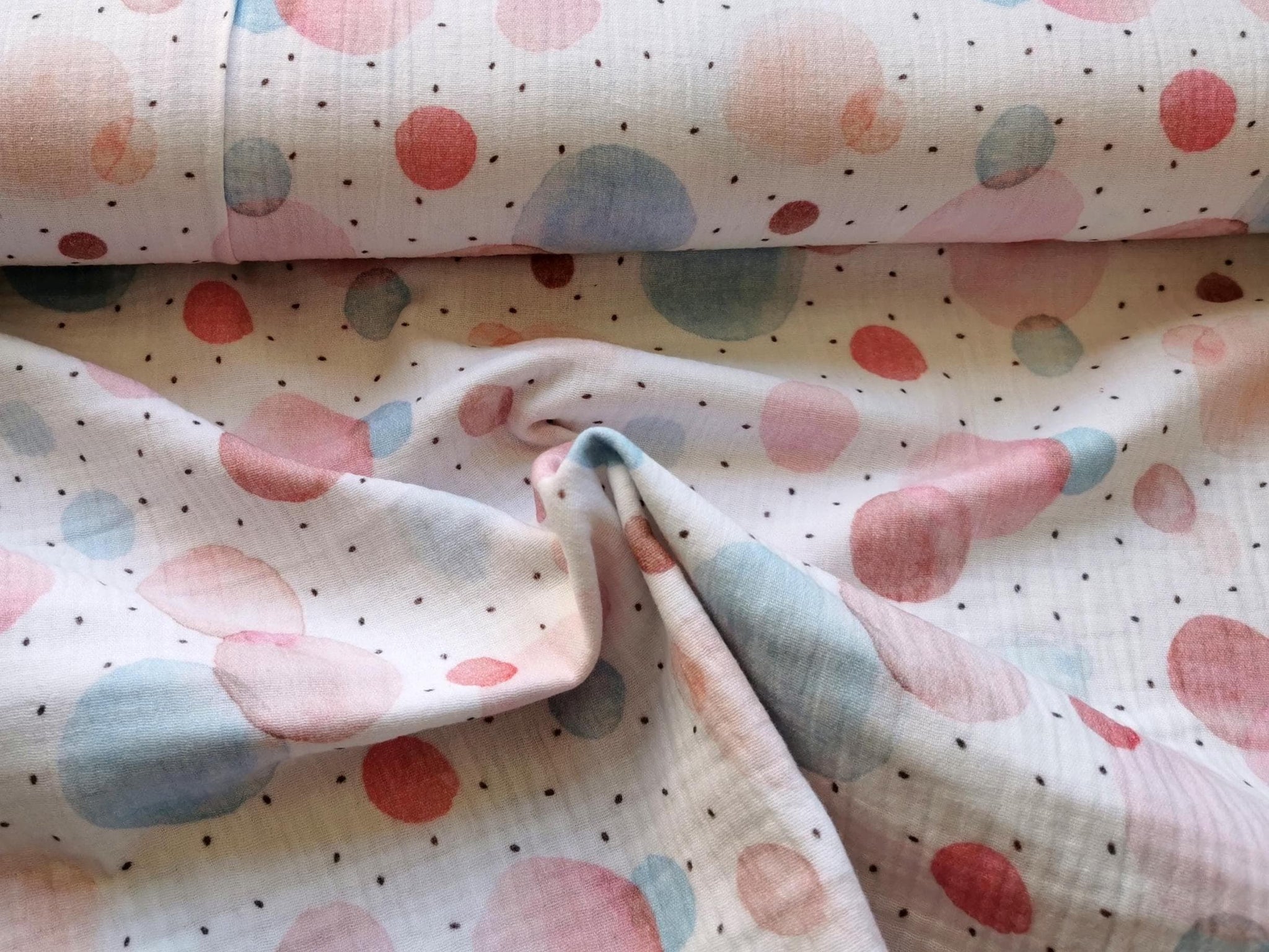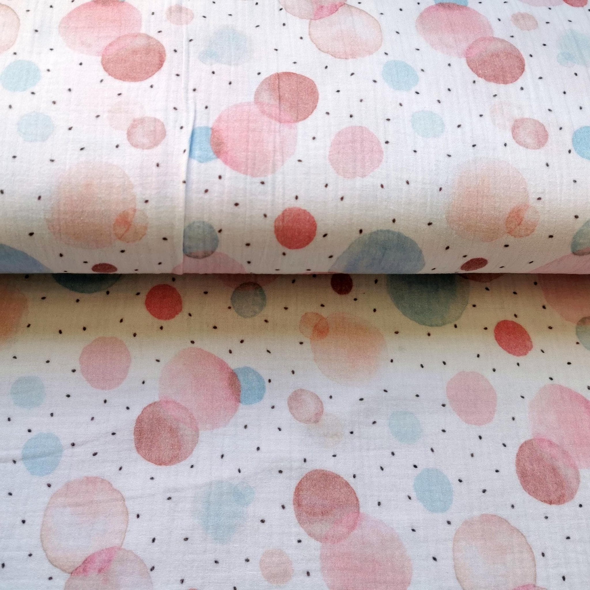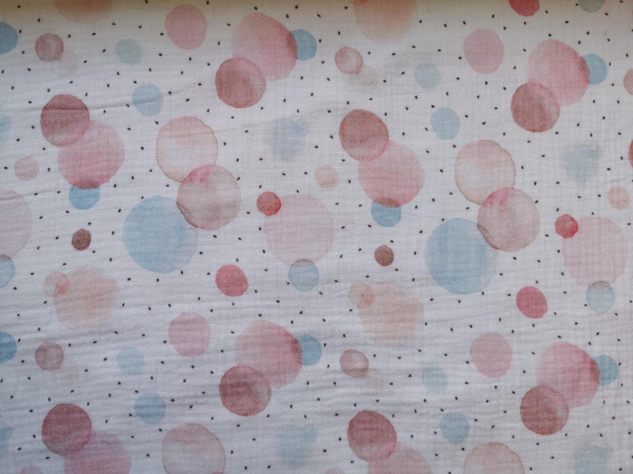 Musselin Stoff mit pastellfarbenen Tupfen/Kreisen | Fräulein von Julie
